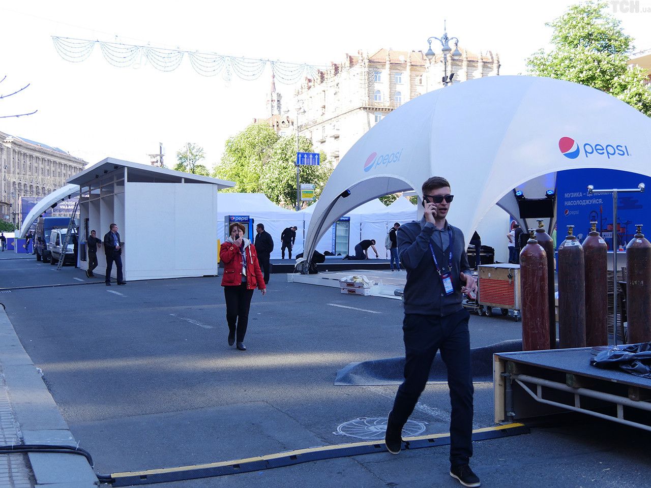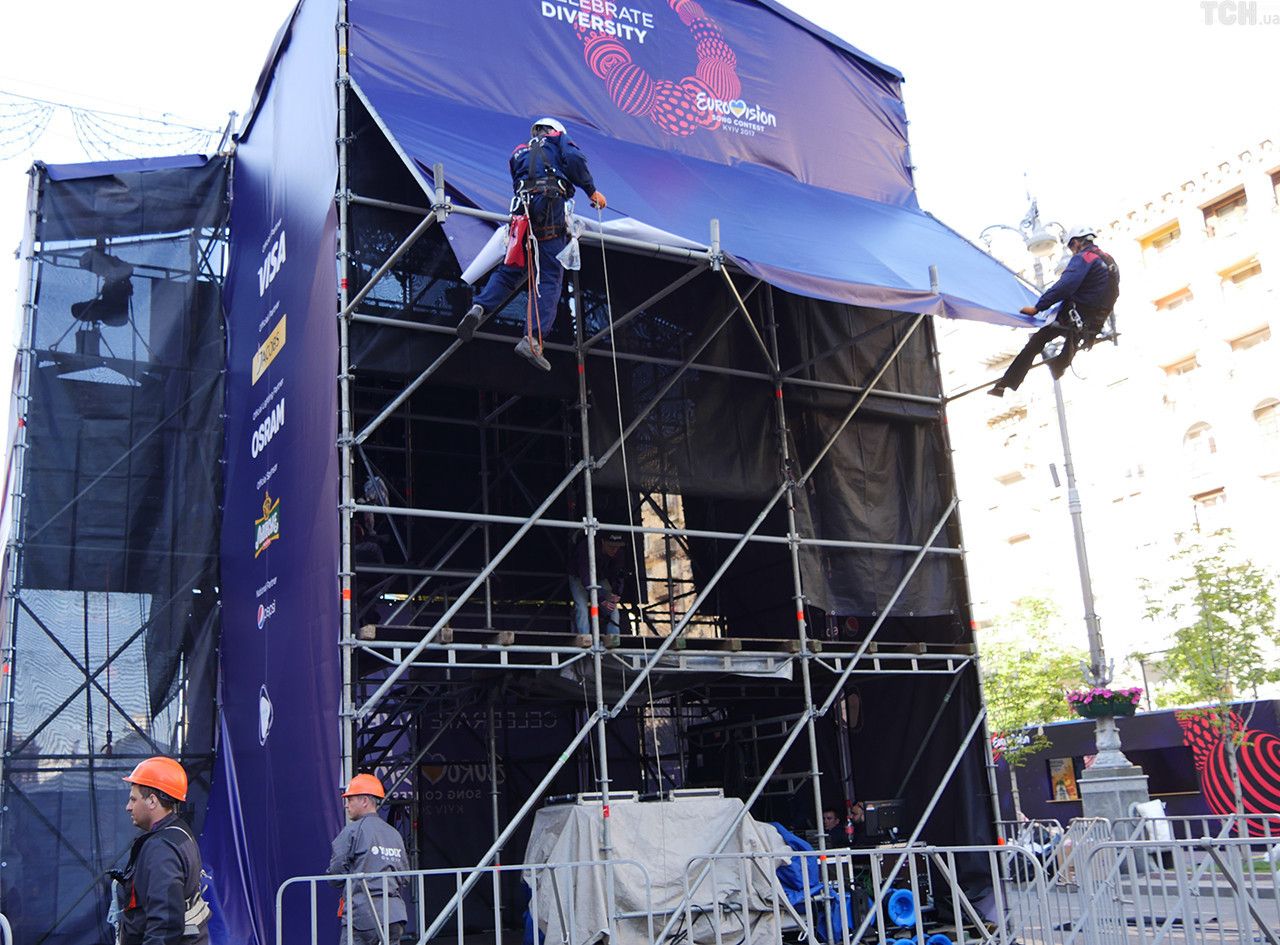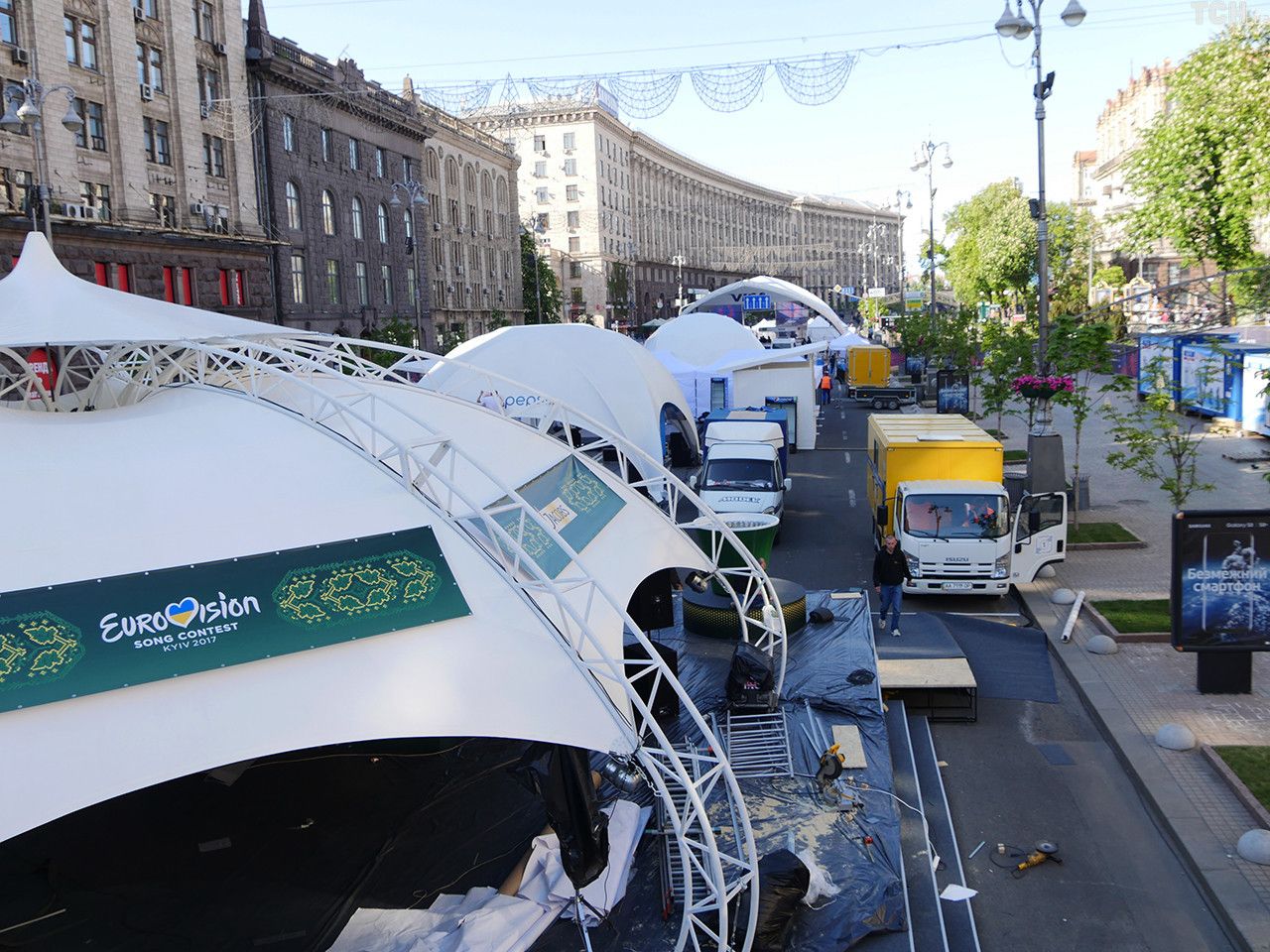За словами організаторів, робота завершена практично на 99%, однак, поки що важко розібратися, де і що планують розмістити у "містечку". Єдине, що виглядає завершеним – сцена, де будуть транслювати конкурс та виступати запрошені українські зірки.