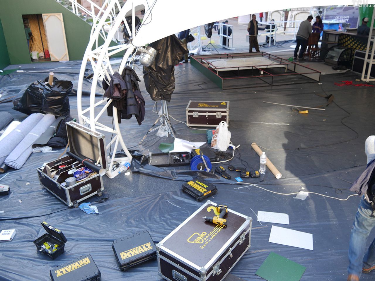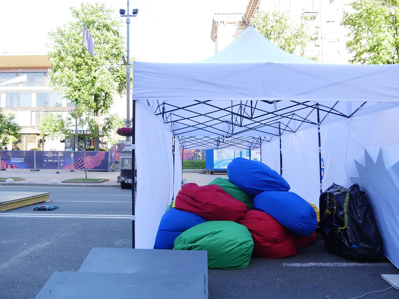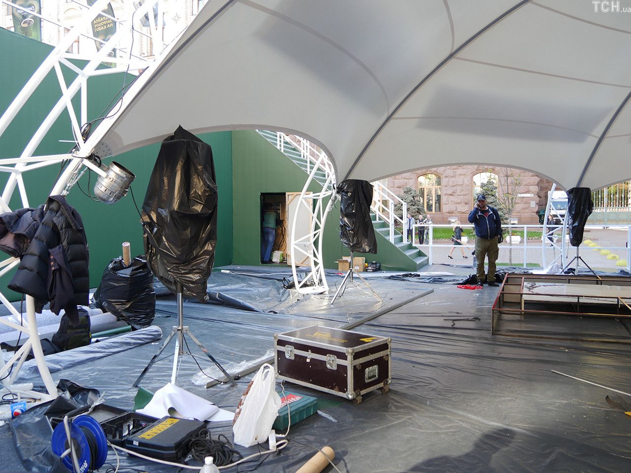 За словами організаторів, робота завершена практично на 99%, однак, поки що важко розібратися, де і що планують розмістити у "містечку". Єдине, що виглядає завершеним – сцена, де будуть транслювати конкурс та виступати запрошені українські зірки.