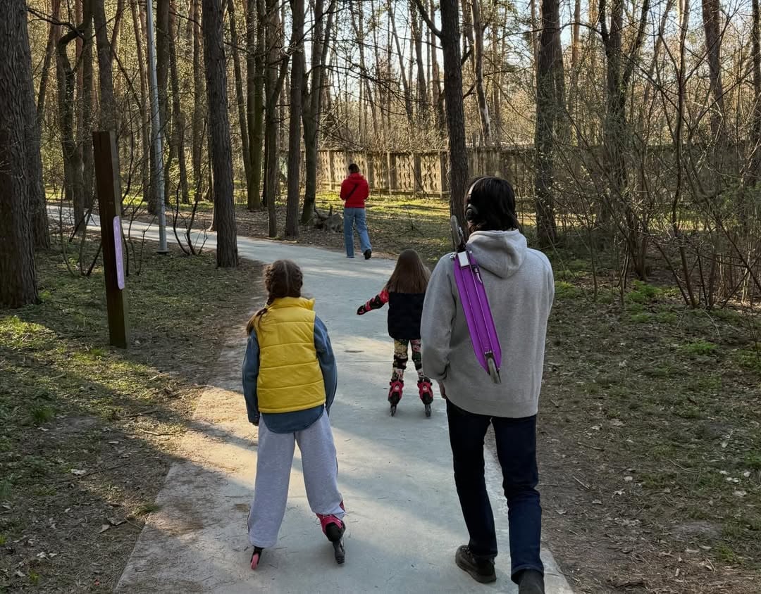 Зірка в Instagram показав прогулянку зі старшим сином Дмитром від першого шлюбу та двома доньками Соломією та Стефанією. Дівчата обрали активний відпочинок — каталися на роликах, тоді як їхній 17-річний брат уважно наглядав за ними та допомагав.
