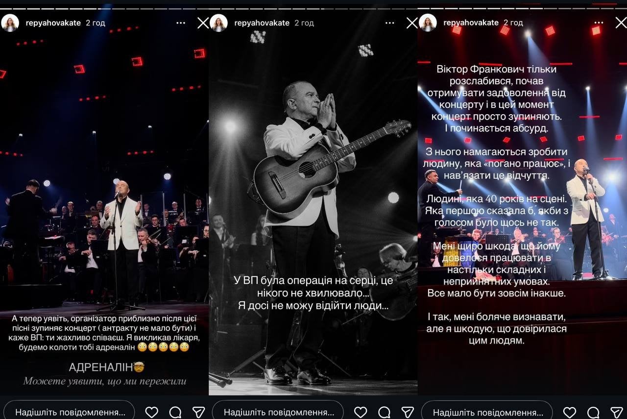 Днями після концерту вона вже заявляла про приниження та психологічний тиск з боку організаторів. Тоді адміністрація майданчика публічно перепросила. Втім, за словами Реп’яхової, ситуація була значно серйознішою, ніж здавалося спочатку.