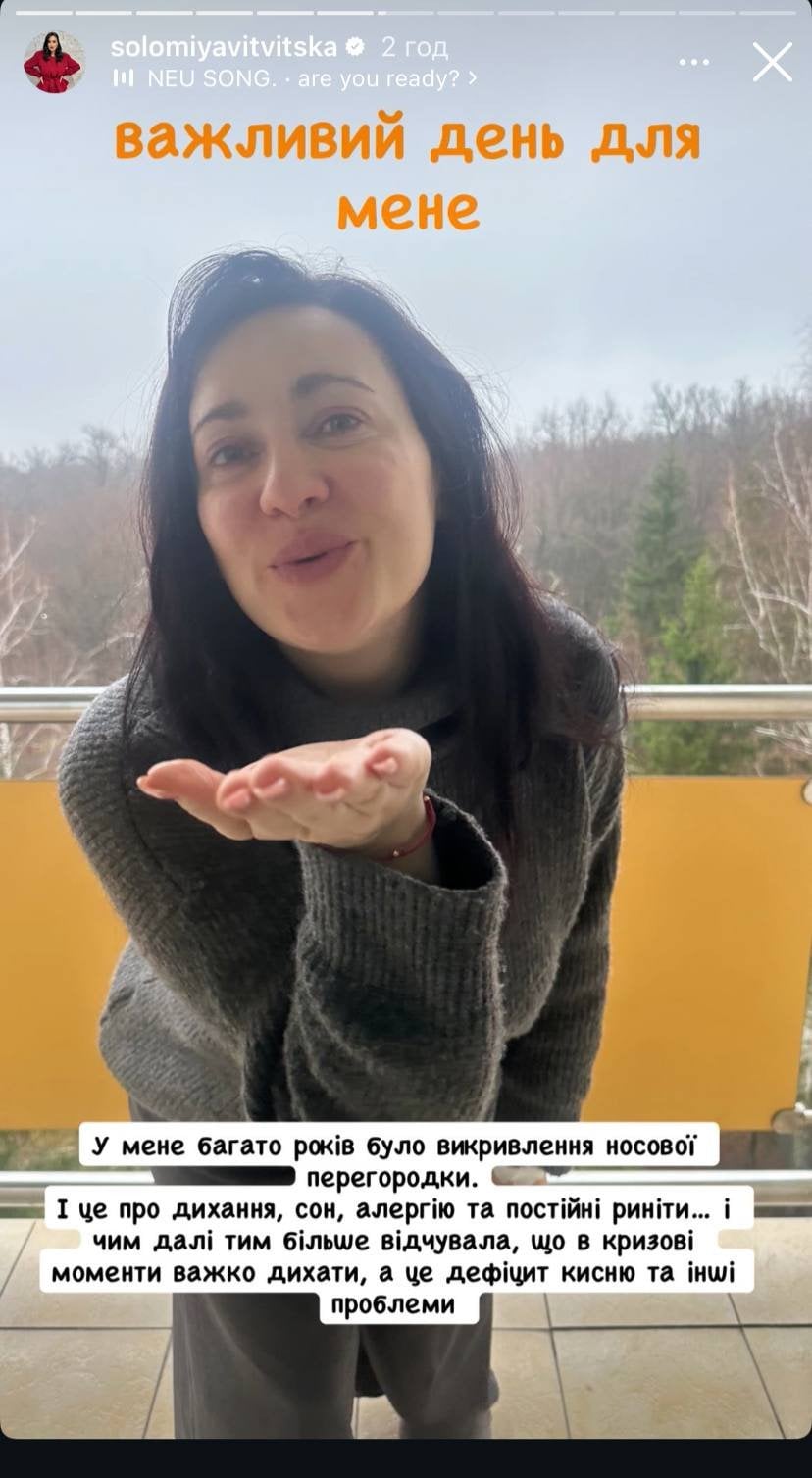 Про це знаменитість повідомила в Instagram-stories. У ведучої була викривлена носова перегородка. Соломія Вітвіцька припускає, що це було спричинене дитячою травмою, яка з віком дедалі більше нагадувала про себе. Знаменитості було тяжко дихати, в неї були проблеми зі сном, алергії. Зрештою лікар підтвердив сильне викривлення перегородки і вивих хряща та порадив операцію, оскільки далі ставало б лише гірше.