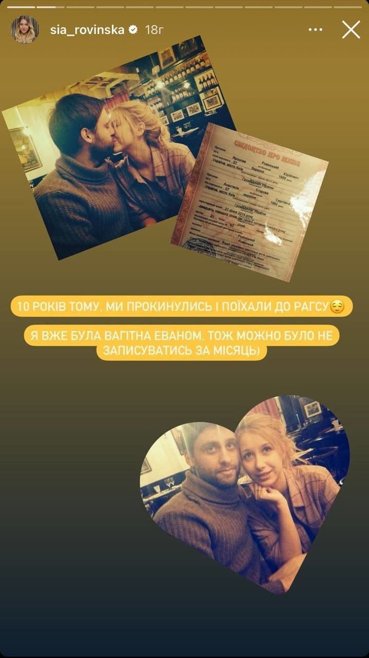"10 років тому ми прокинулися і поїхали до РАЦСу. Я вже була вагітною Еваном, тож можна було не записуватися за місяць", - пригадала артистка.
