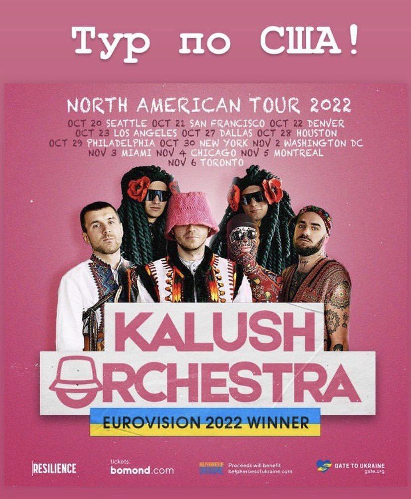 Український гурт Kalush Orchestra, який став переможцем "Євробачення-2022", оголосив концертний тур Північною Америкою.
