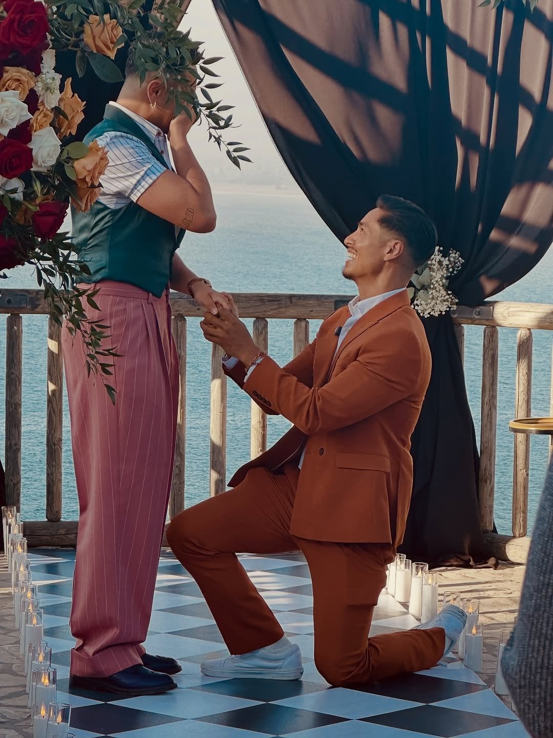 Так, знаменитість повідомив радісну новину в Instagram. Він опублікував серію фото, як його коханий освідчився йому. Подія сталася у мальовничому місці — альтанці, прикрашеній квітами та свічками. Гомес відповів згодою й зізнався, що це було «найпростіше рішення всього його життя».