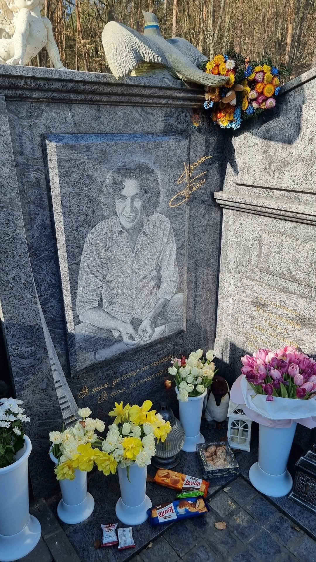 Чоловік зізнався, що давно планував відвідати місце спочинку артиста, який пішов із життя восени минулого року. У фотоблогу він показав, який вигляд має могила. На світлині помітно, що вона доглянута, з квітами та лампадками.