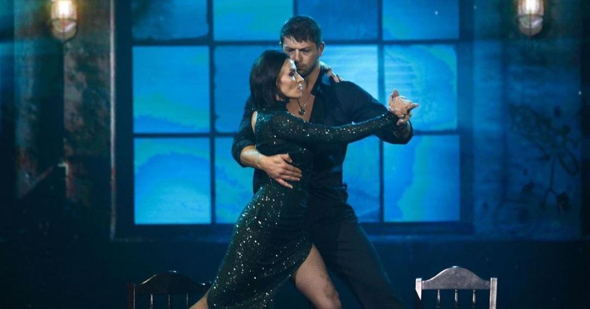 Акторка та її партнер Кирило Васюк виконали драматичне танго під пісню "ВІА Гри" – "Пошел вон". Знаменитість з’явилася на паркеті у розкішній смарагдовій сукні з високим розрізом. Свій танець учасники розпочали на стільцях.