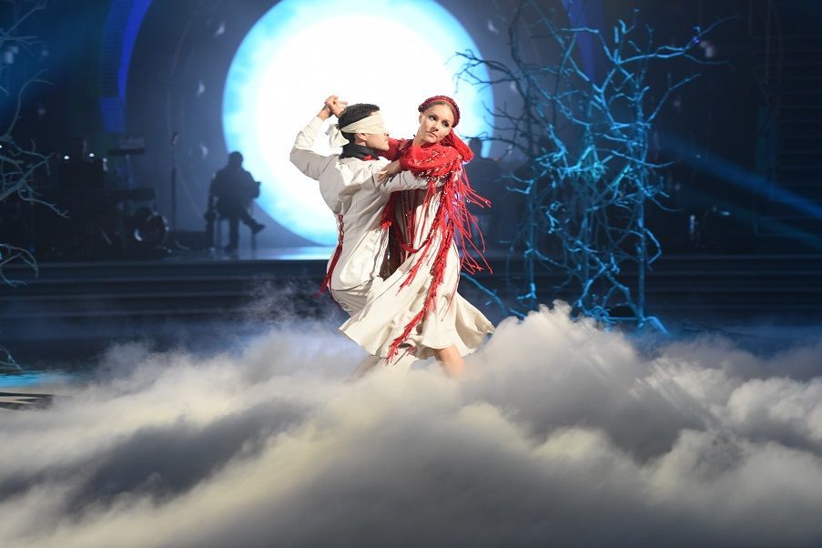 Ахтем Сеітаблаев та Олена Шоптенко відтворили на головному паркеті країни фокстрот за мотивами стрічки "Тіні забутих предків". Пара виступала в яскравих українських костюмах з автентичними елементами.