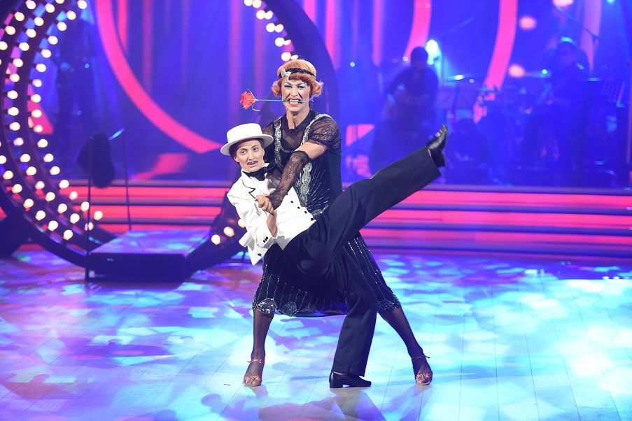 Сергій та Сніжана Бабкіни на паркеті "Танців з зірками" показали бурхливий перфоманс – бродвейський джаз із легендарного фільму "У джазі тільки дівчата". На головний паркет країни співак вийшов в образі Дафни, заради чого навіть зголив бороду та протанцював весь номер на підборах. А його дружина Сніжана – в образі міліонера Осгуда Філдінга. Пара вразила не тільки глядачів, але й найбільш вимогливу суддю проекту Катерину Кухар, яка у знак свого визнання подарувала Сергію квітку протеї.