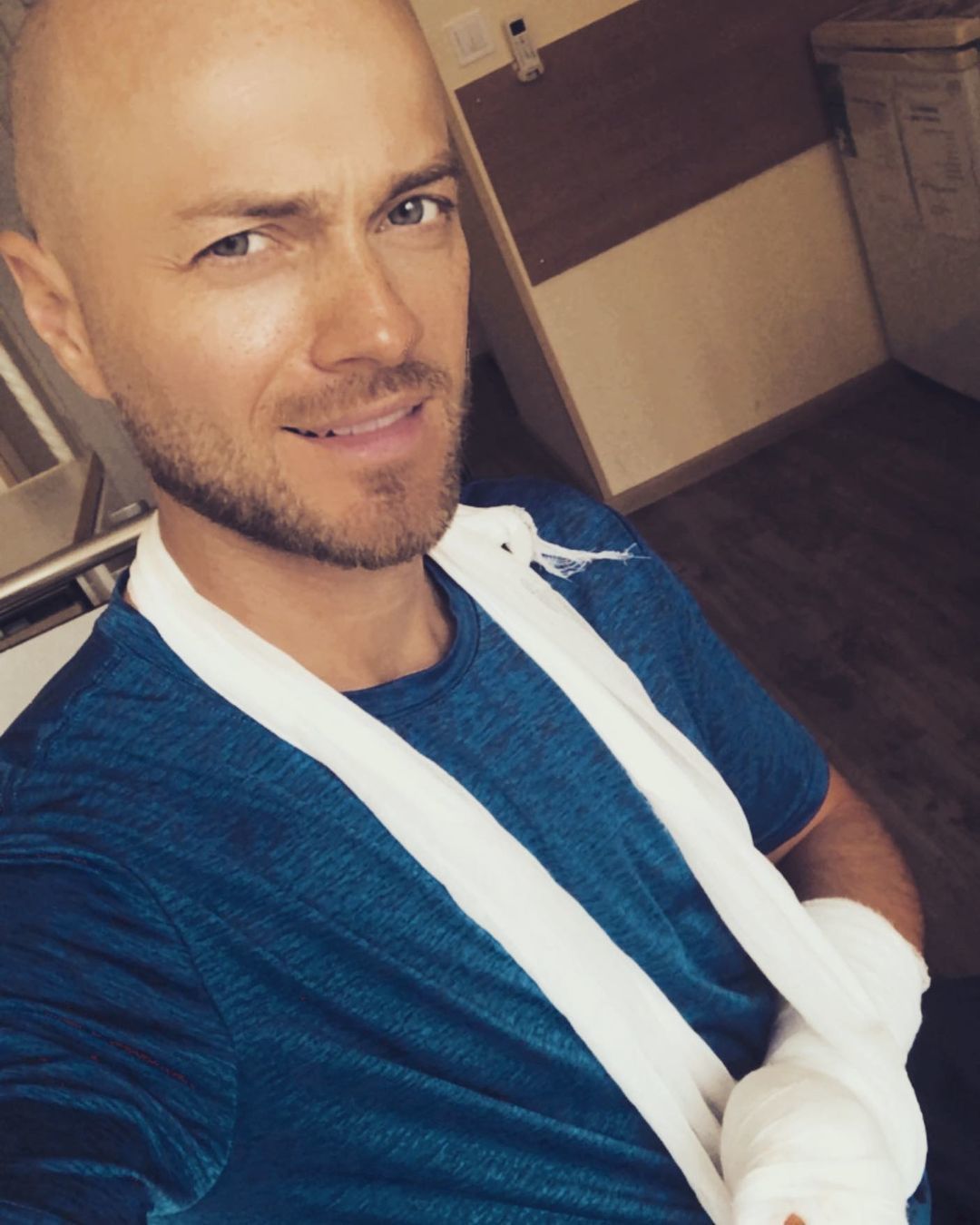 Так, танцівник на своїй сторінці в Instagram опублікував фото з лікарні, на якому показався з гіпсом на руці, й розповів, як минула операція.