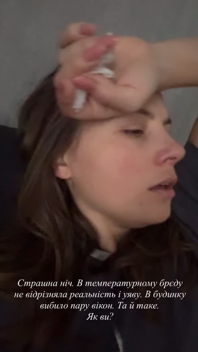 "Страшна ніч. У температурному маренні не відрізняла реальність і уяву. В будинку вибило пару вікон. Та й таке. Ви як?" – поділилась знаменитість.