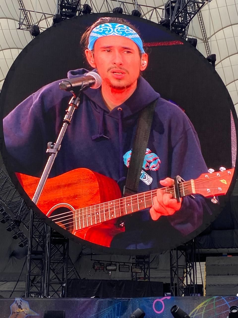 Це був дуже складний вибір, бо на мене впала величезна відповідальність, яку пісню Goldplay вперше заспівають у своєму турі українською мовою. Я запропонував їм або пісню, яку я дуже добре знаю, або іншу, яку я ніколи до цього не виконував, але вона буде щирішою, красивішою і "на часі". Це і була пісня "Обійми" від "Океану Ельзи", яку я не виконував ніколи до концерту Coldplay. Для мене це був неймовірний виклик, чи зможу я вперше заспівати цю пісню на стадіоні. Тож ми обрали її, і я виступив на розігріві гурту. На завершальному етапі, в останньому блоці, ми виконали "Обійми" разом із Крісом Мартіном. Це був найдраматичніший момент усього концерту.