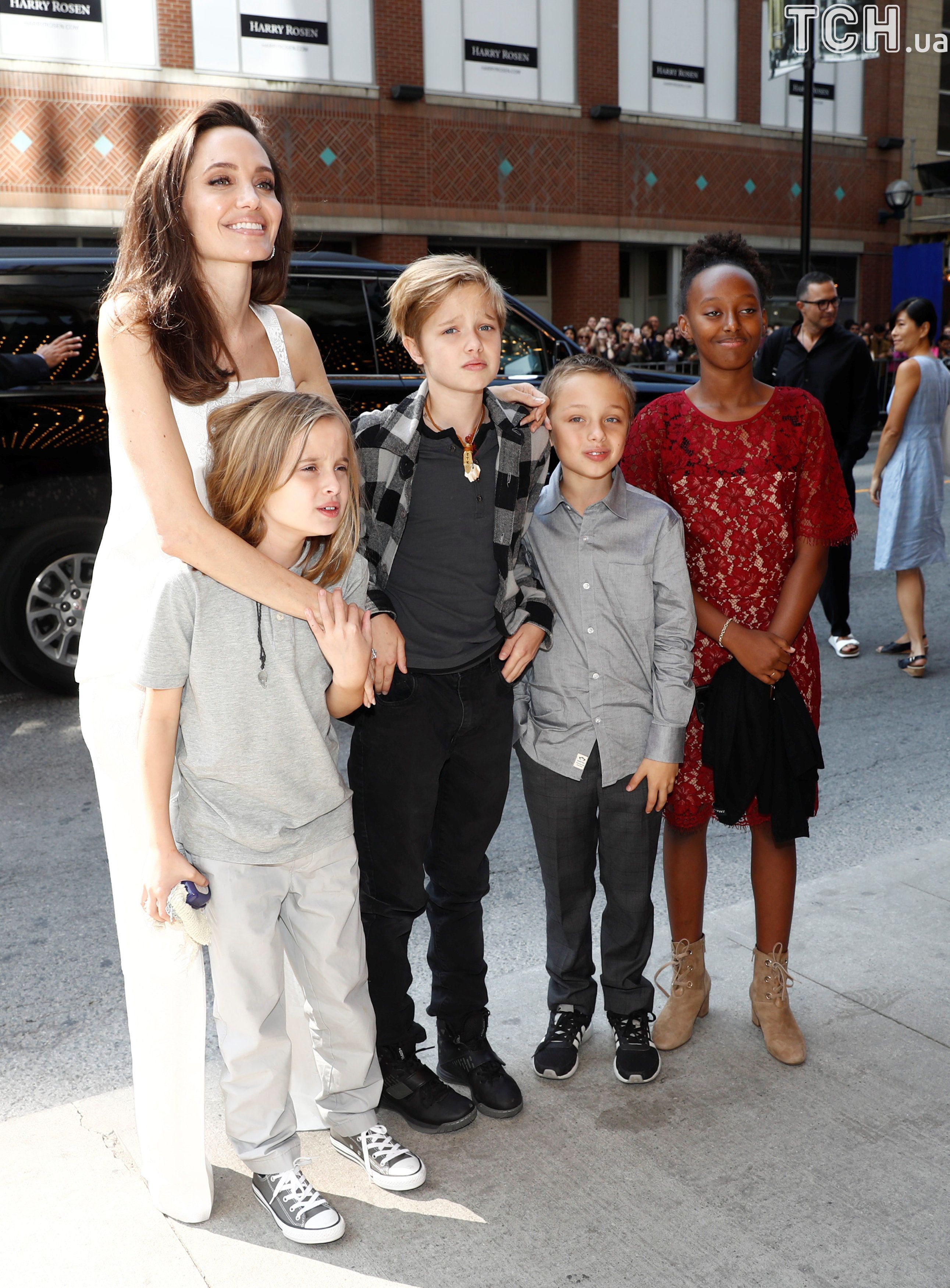 Разом із зірковою мамою до Канади приїхали її доньки та сини. Хоча старшого Меддокса немає на світлинах, ЗМІ стверджують – хлопець був на фестивалі.
