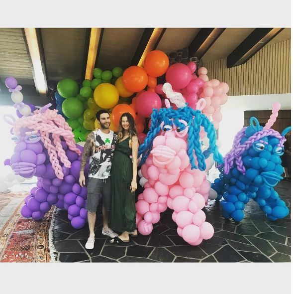 У своєму фотоблозі Бехаті показала спільну із Адамом світлину, де подружжя позує на фоні величезних єдинорогів із повітряних кульок.