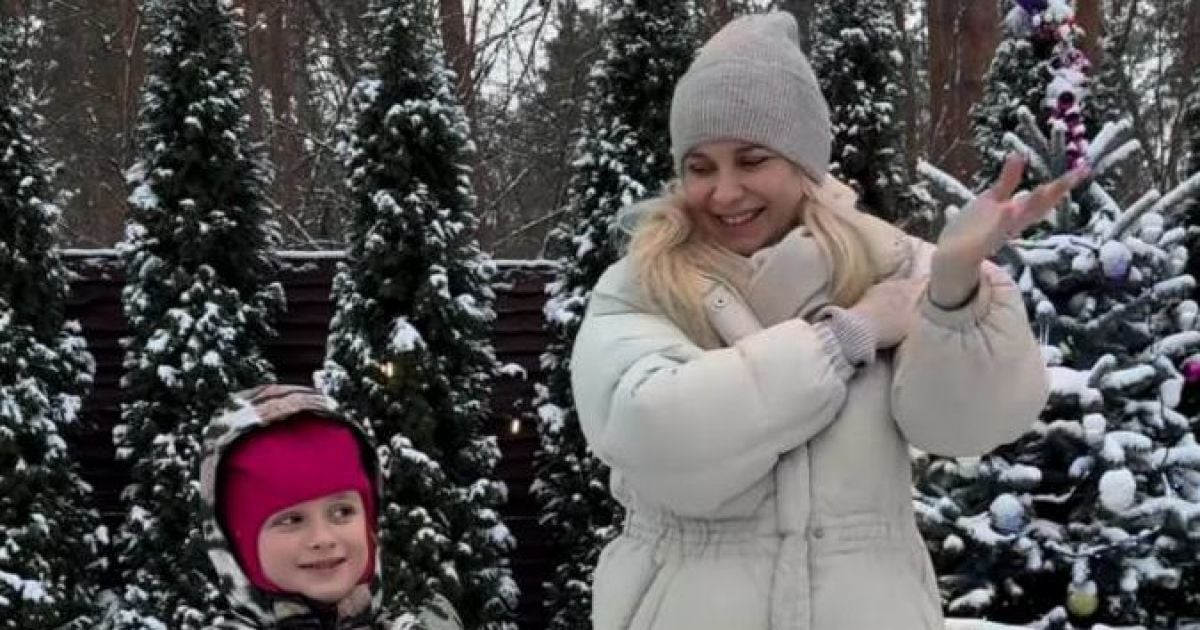 До слова, молодша донька Лілії у кадрі має цікаве вбрання. Дівчина постає у комбінезоні з тигровим принтом у рожевій шапці.