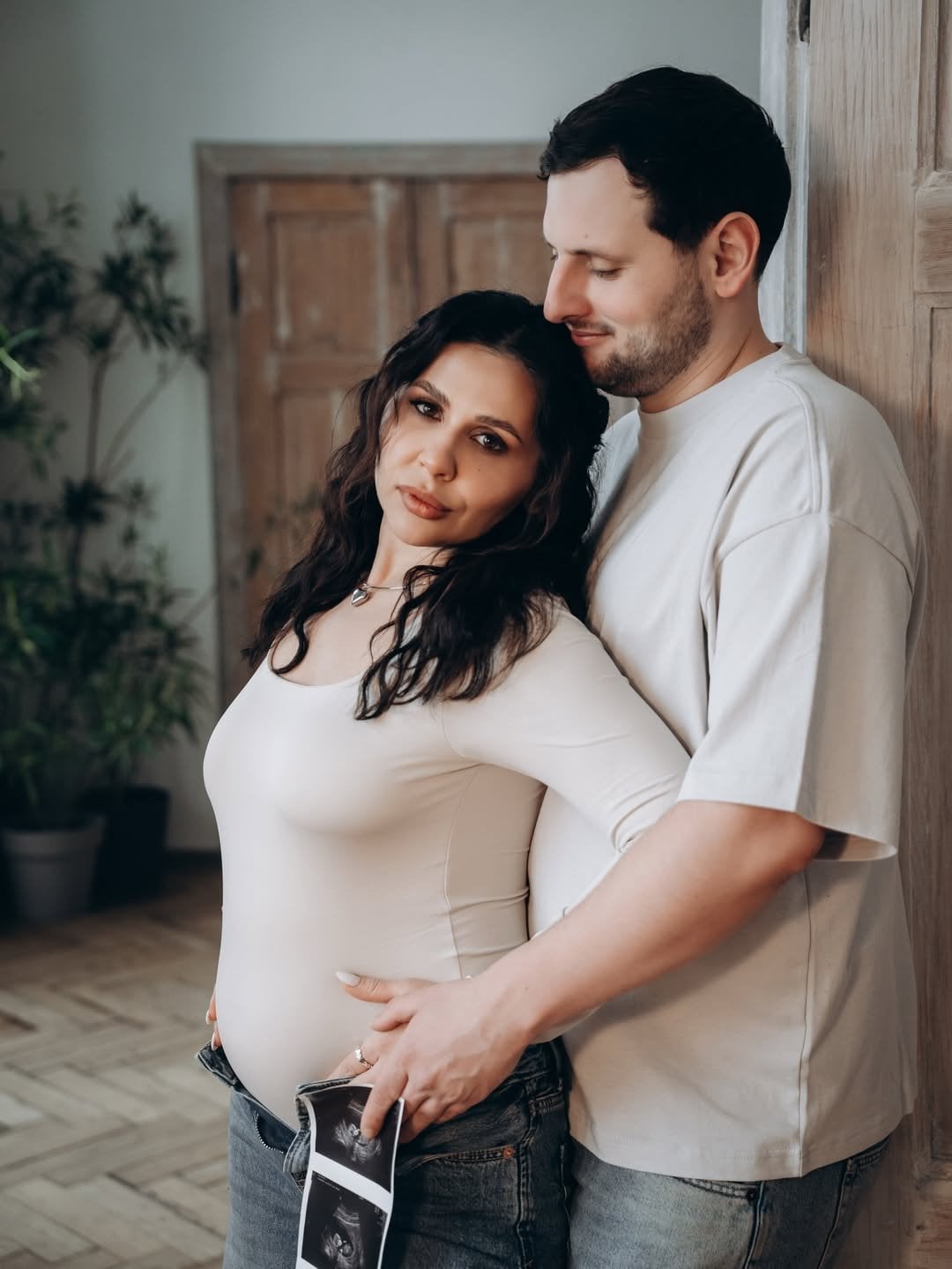 В Instagram 31-річна зірка опублікувала ніжні кадри, де постала у чорній обтислій сукні, яка підкреслила округлий животик. Поруч — її чоловік Олег, який тримав у руках знімок УЗД. Наприкінці ролика коханий простягає майбутній мамі дитячу пляшечку, після чого пара обмінюється поцілунком.