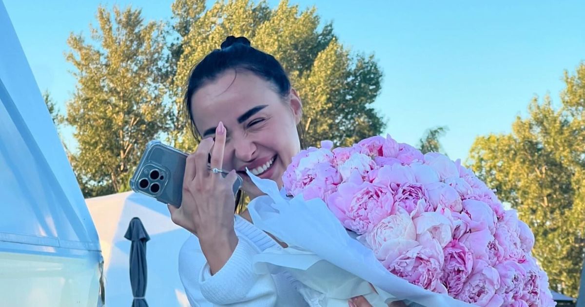 Під час освідчення Грицаєнко отримала чималу каблучку з діамантом, яку одразу приміряла на безіменний палець, і чималий букет рожевих квітів. Вочевидь, важливий момент пара відсвяткувала за містом.