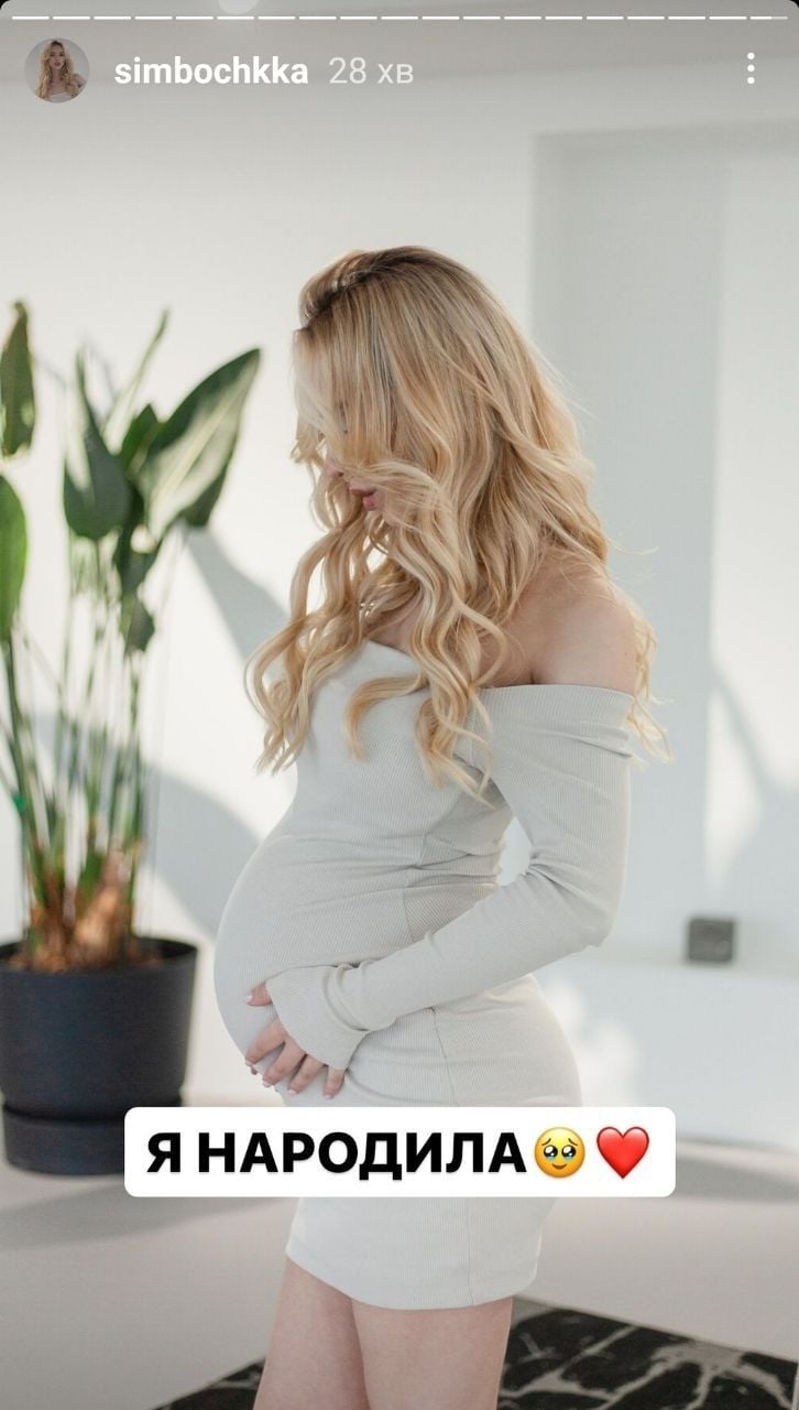 Своєю чергою, обраниця Перфенюка, блогерка Сімбочка, теж прокоментувала поповнення у родині. У сторіз свого фотоблогу вона запостила зворушливе фото, де постала з чималим животиком і написала: "Я народила".