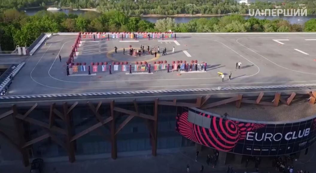 Із даху однієї з офіційних локацій "Євробачення-2017" – Euroclub – злітають в київське небо перші прапори країн-учасниць пісенного конкурсу.