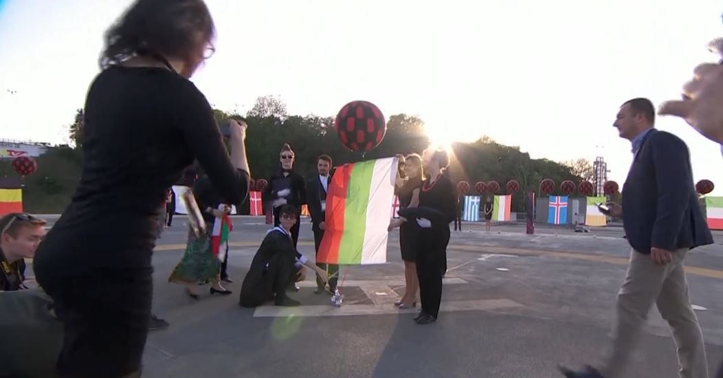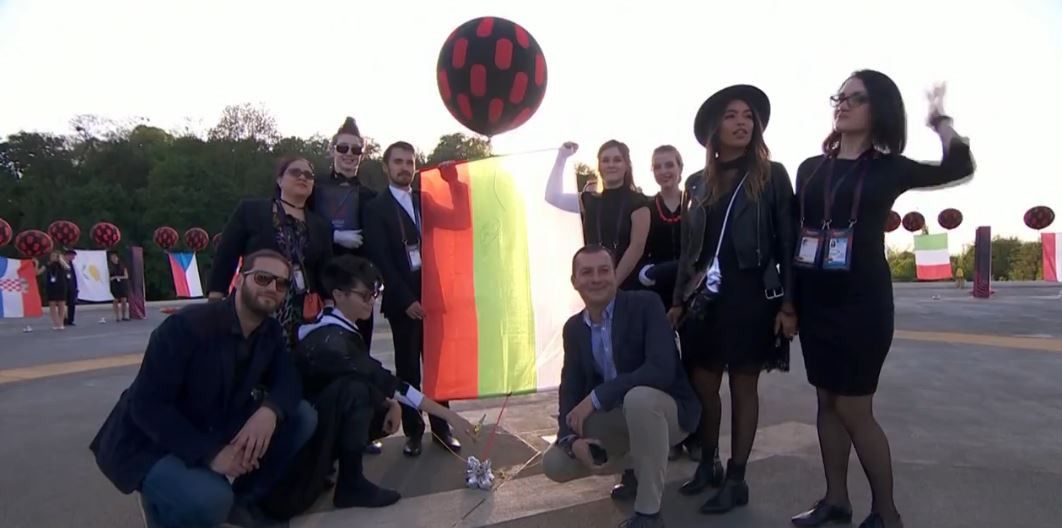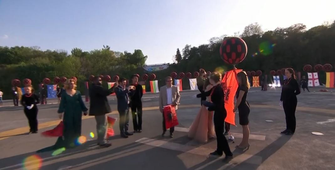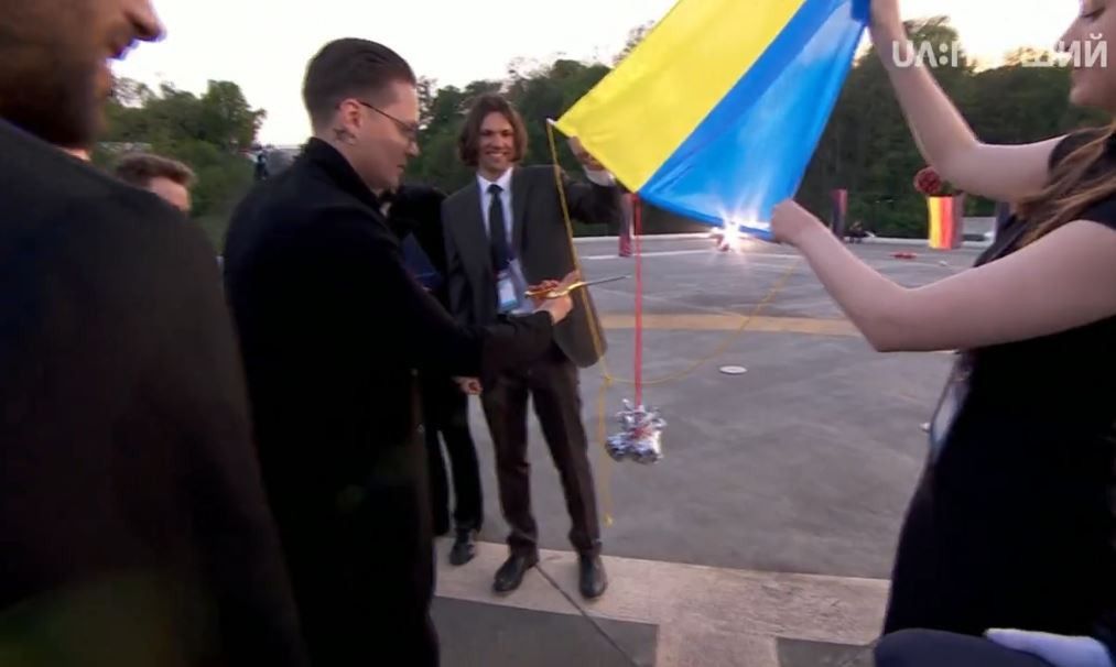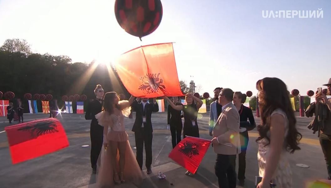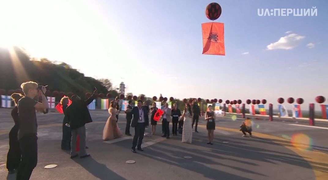 Конкурсантка із Албанії Ліндіта Халімі, білоруси Navi Band та низка представників інших країн вже відпустили свої прапори із оглядового майданчика. Наймолодший учасник конкурсу, представник Болгарії 17-річний Крістіан Костов також запустив прапор своєї держави в українське небо.