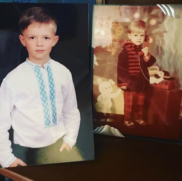 До того ж, зірка наочно продемонстрував: син дуже схожий на нього. Поряд із кадром маленького себе артист розмістив світлину восьмирічного Андрійка у вишиванці.