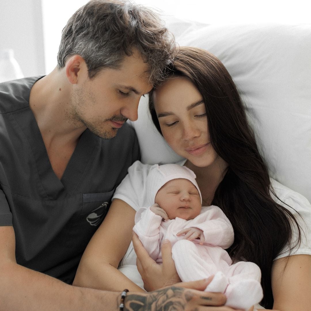 У своєму фотоблогу подружжя зробило спільний допис, де вперше повністю показало донечку. Зокрема, як вони її зустрічали при появі на світ. На зображенні видно неймовірно щасливого Євгена, який тримає первістка на руках, а також Наталію, яка ніжно обіймає новонароджену доню. Також новоспечені батьки потішили фанів першими спільними фото з донечкою, де позують вже втрьох.