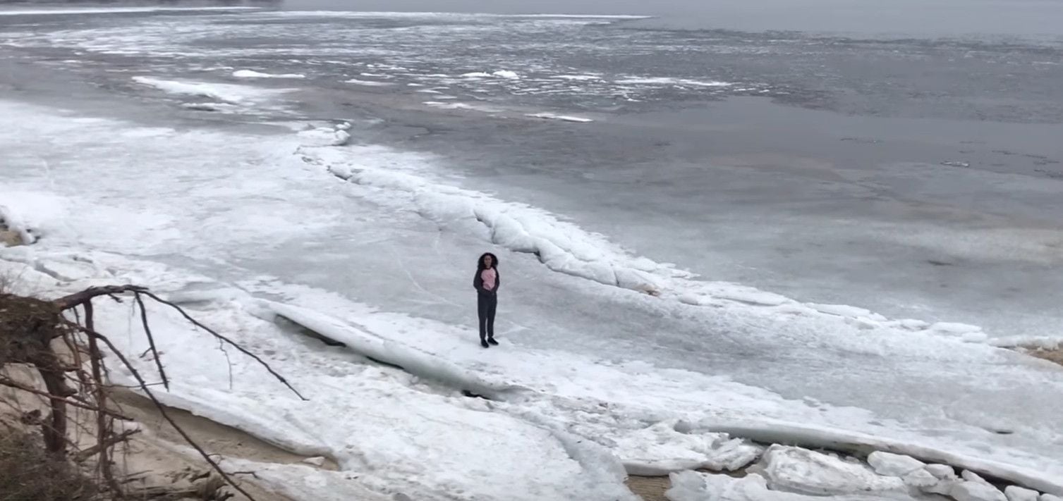 Співачка та новоспечений дизайнер Настя Каменських під час знімань відео для колекції свого одягу без верхнього одягу бігала по льоду.