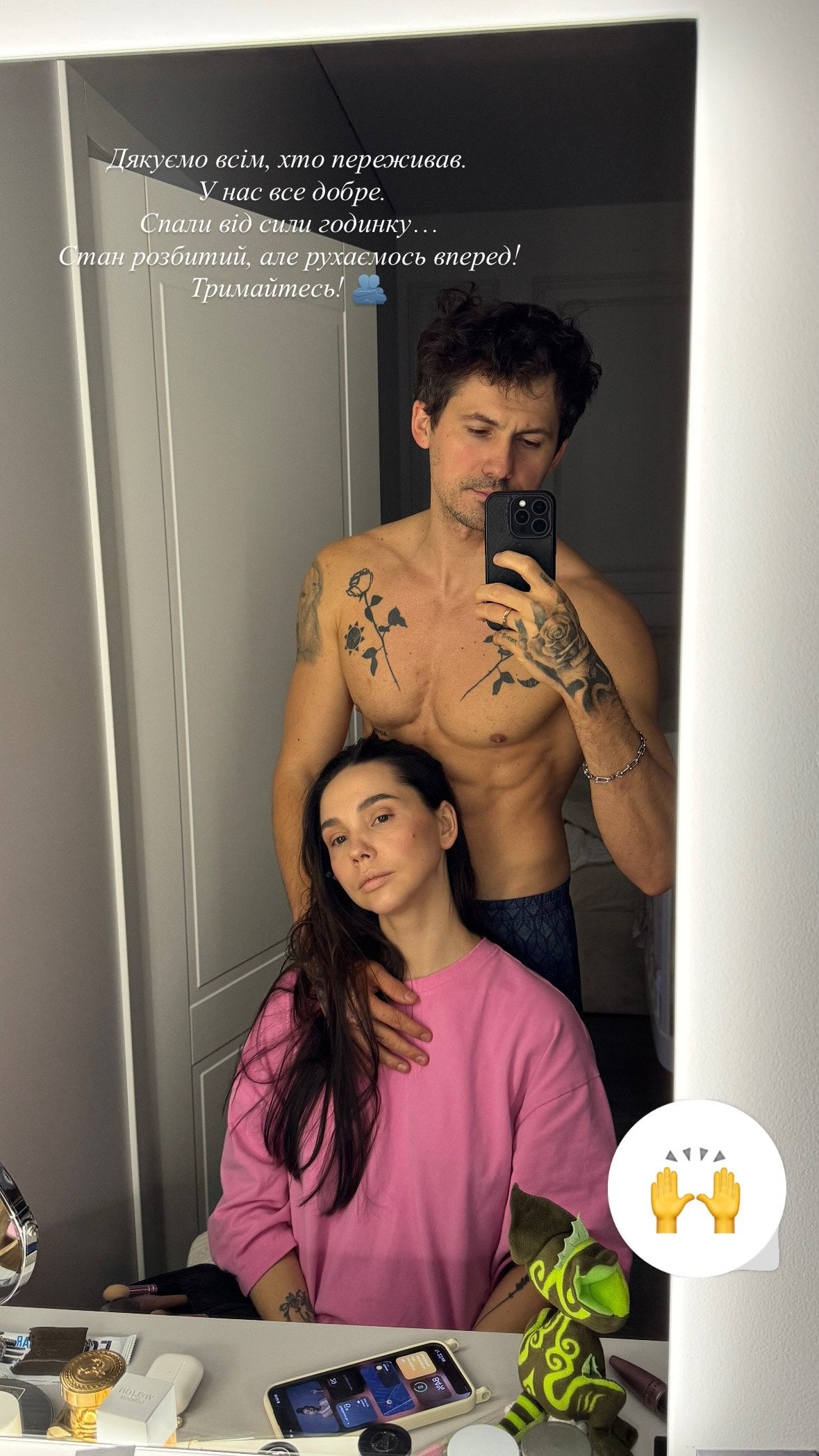 "Дякуємо всім, хто переживав. У нас все добре. Спали від сили годину... Стан розбитий, але рухаємося вперед! Тримайтесь", - поділився хореограф.