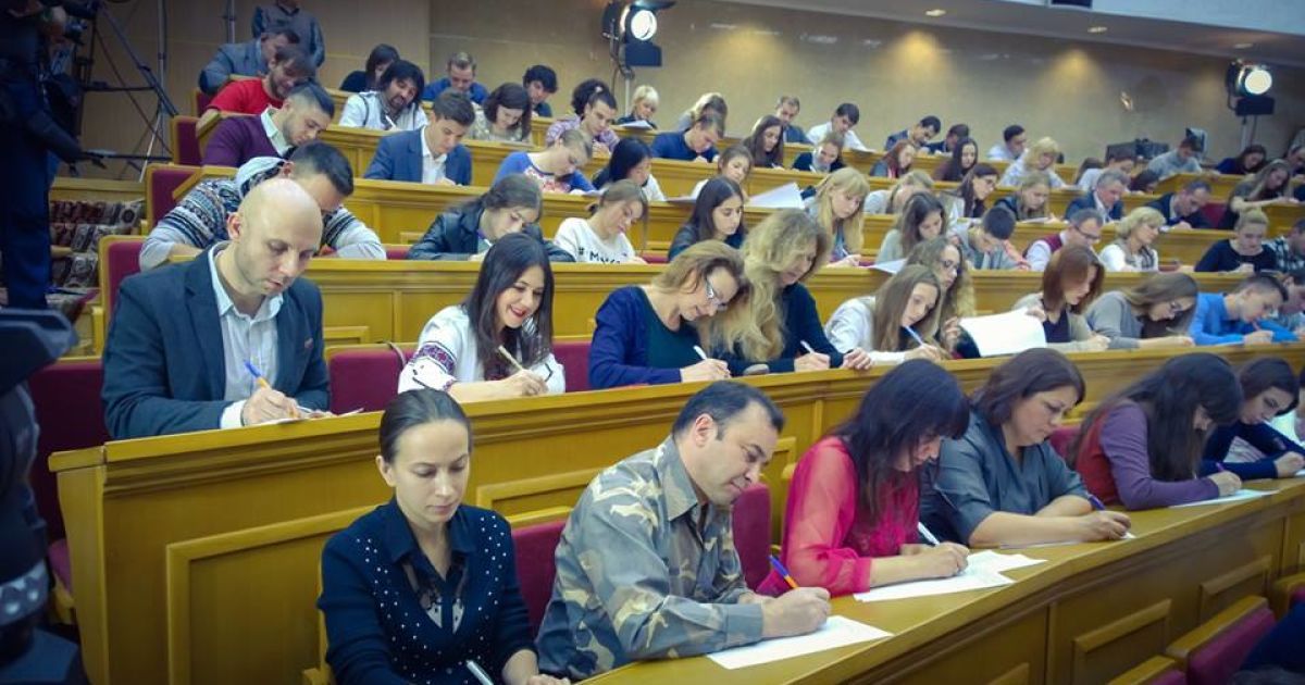 Так, співак Віктор Павлік, фронтмен гурту Mad Heads Вадим Красноокий, фронтмен гурту "Антитіла" Тарас Тополя, Анжеліка Рудницька, сестри Тельнюк та інші зібралися разом в аудиторії університету імені Тараса Шевченка, аби написати радіодиктант.