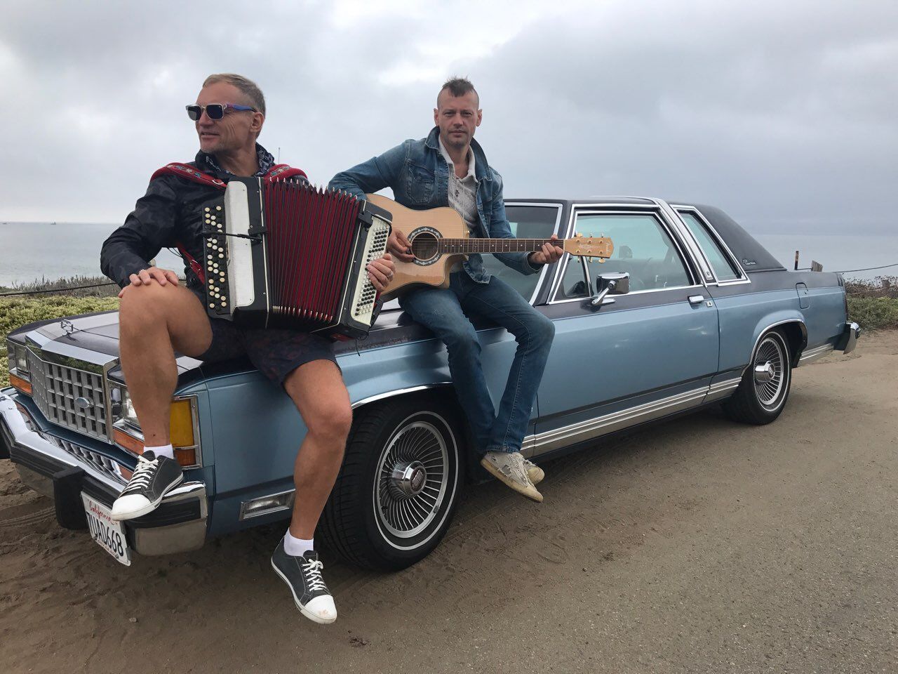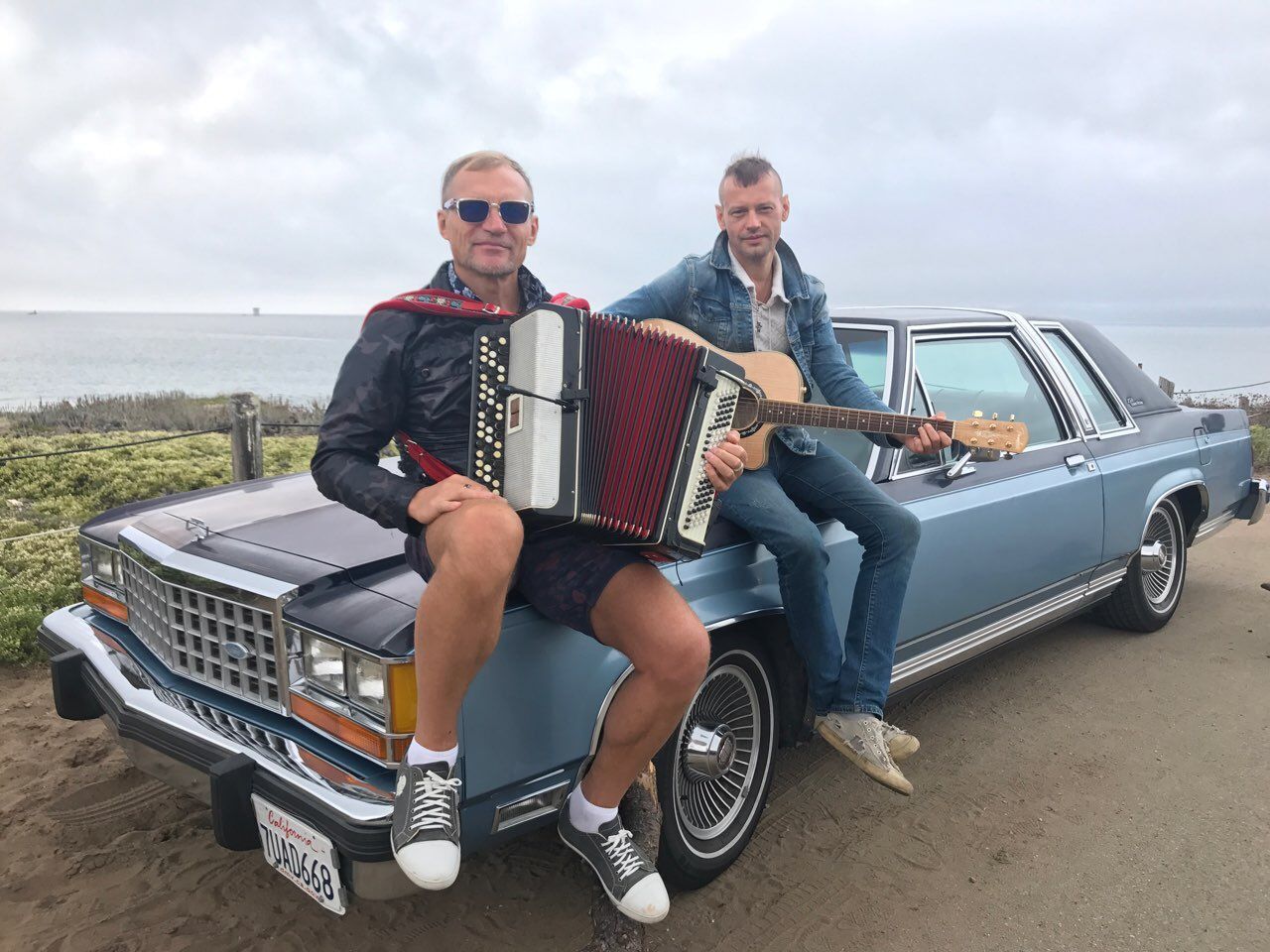 Олег Скрипка та гітарист Євген Рогачевський також знялися у фотосесії із ретро-автівками.