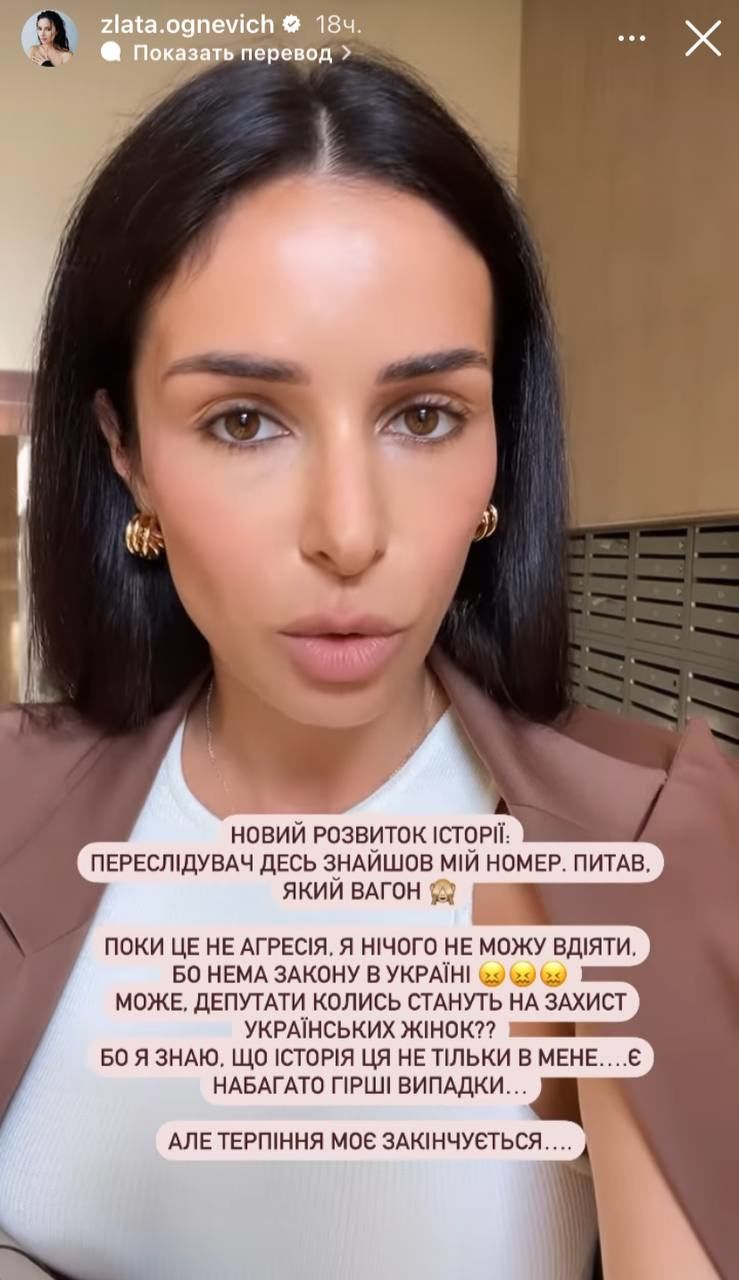 Злата Огнєвіч поскаржилася на неприємні пропозиції від переслідувача: "Терпіння моє закінчується"