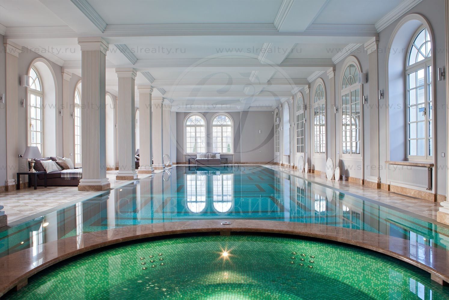 В будинку є дегустаційна і винний льох, вітальня з каміном, музична вітальня, парадна кухня-їдальня і кухарська кухня, гараж на 4 машини і басейн із зоною спа та тренажерними залами, 5 спалень (деякі з камінами), 6 ванних кімнат, домашній кінотеатр з холом і баром, декілька ліфтів, і багато іншого.