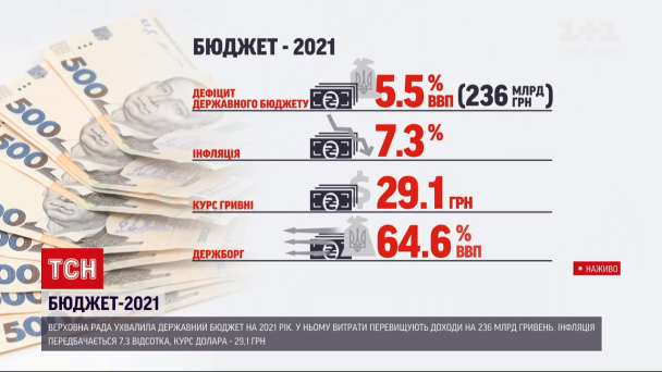 15 грудня Верховна Рада ухвалила державний бюджет на 2021 рік. Із чималою діркою — витрати перевищують доходи, інфляцією, підвищенням зарплат учителям і лікарям, видатків на можновладців.