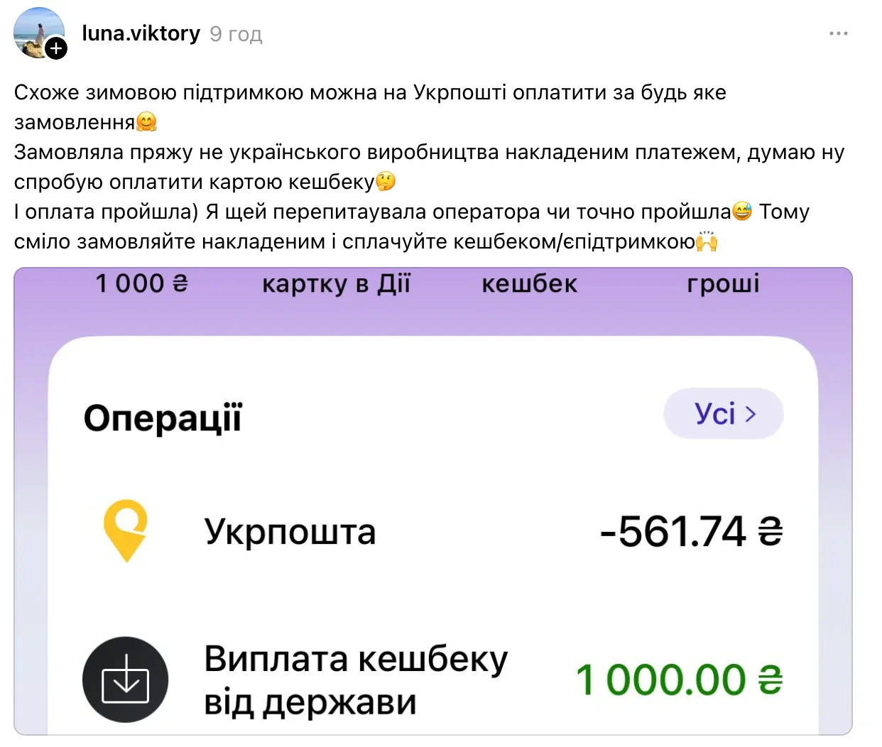 Одна з користувачок Мережі розповіла, що у відділенні «Укрпошти» мала отримати посилку з післяплатою, тому вирішила спробувати сплатити її карткою «Національний кешбек». Оплата відбулася успішно.