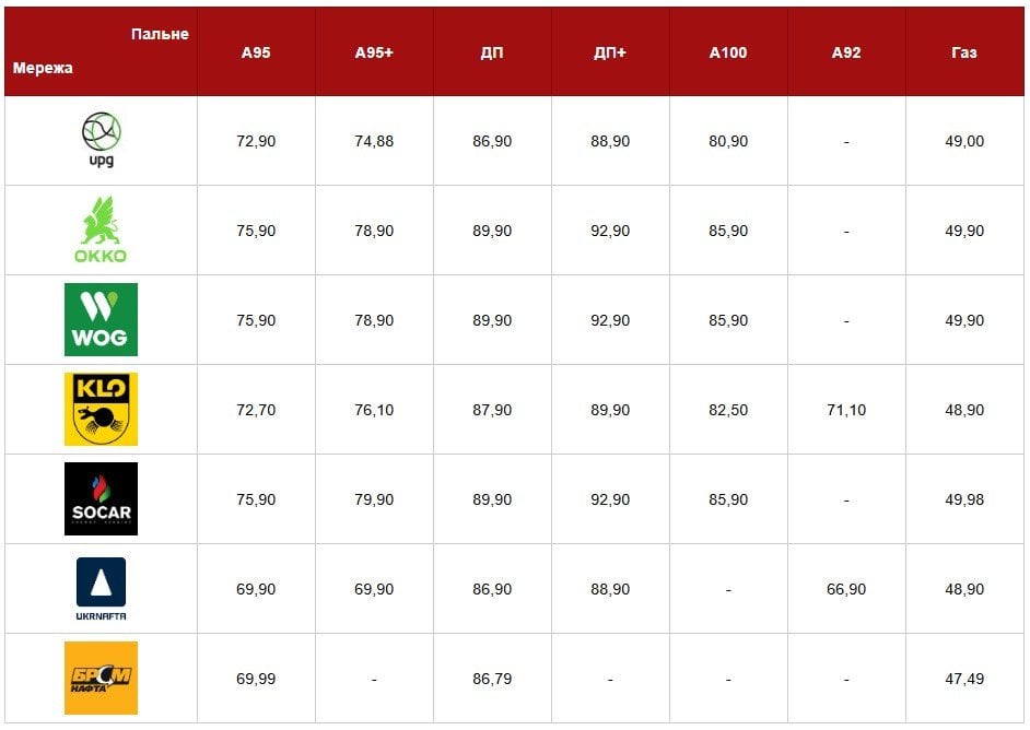 Станом на 24 квітня 2026 року найбільші мережі АЗС в Україні оновили ціни на пальне.
