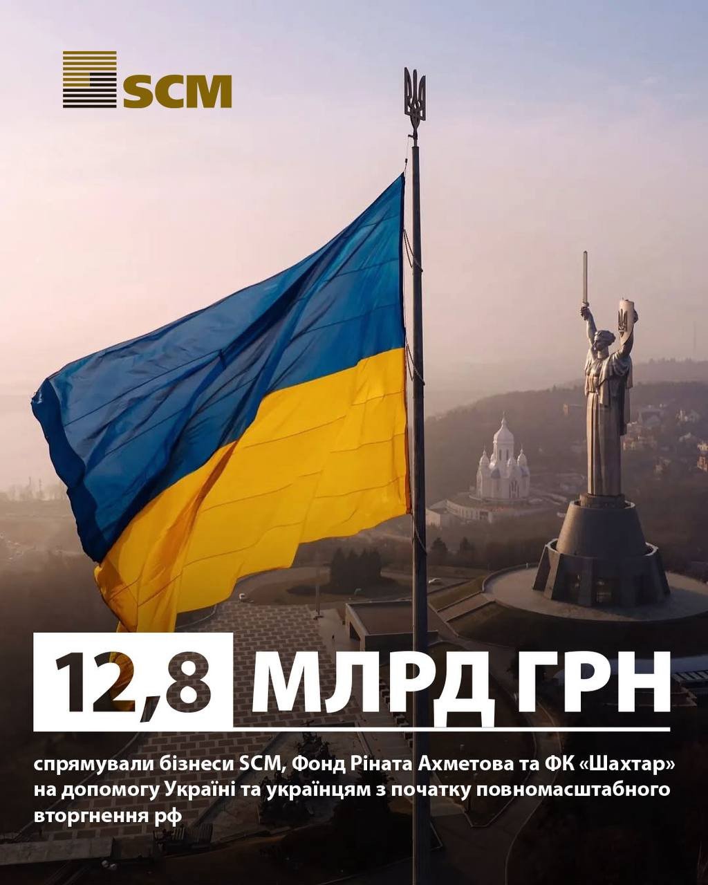 До Дня захисників і захисниць України компанії та підприємства Ріната Ахметова повідомили про понад 12,8 млрд грн (близько $350 млн) допомоги державі, військовим і цивільним від початку повномасштабного вторгнення. Кошти та ресурси надходили від бізнесів SCM, Фонду Ріната Ахметова та ФК «Шахтар» і спрямовувалися насамперед на підтримку Сил оборони, програми для ветеранів і громади, а також на гуманітарні та освітні ініціативи.