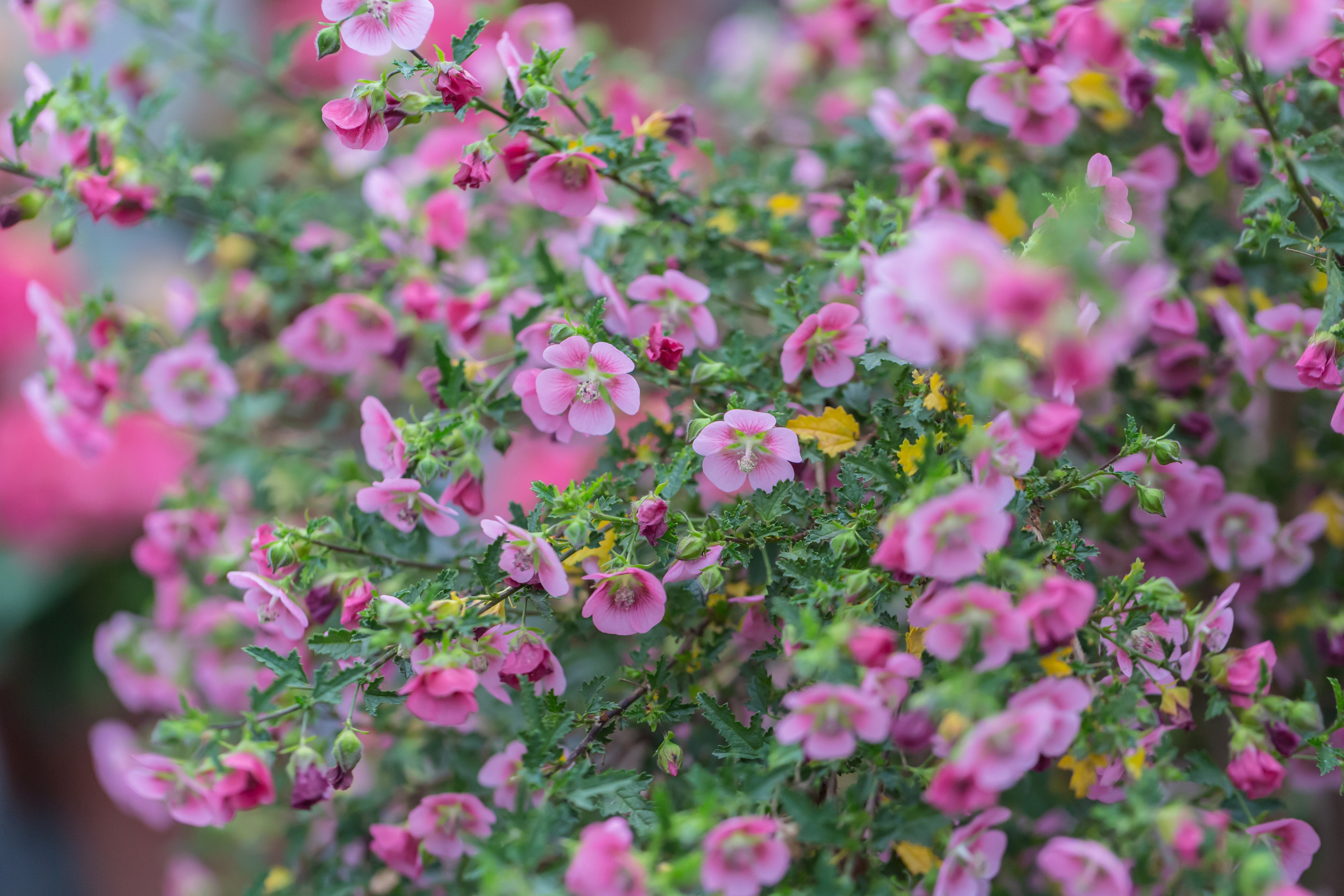 Добре мати певну висоту в задній частині бордюру, але для цього потрібні швидкі чагарники та багаторічні рослини. Легко виростаючи до 2 м у перший рік, анісодонтея — це справжнє диво, яке цвіте цілий рік насичено-рожевими квітами з темним центром. Вона не любить холоду, тому потребує утеплення або контейнерного вирощування.