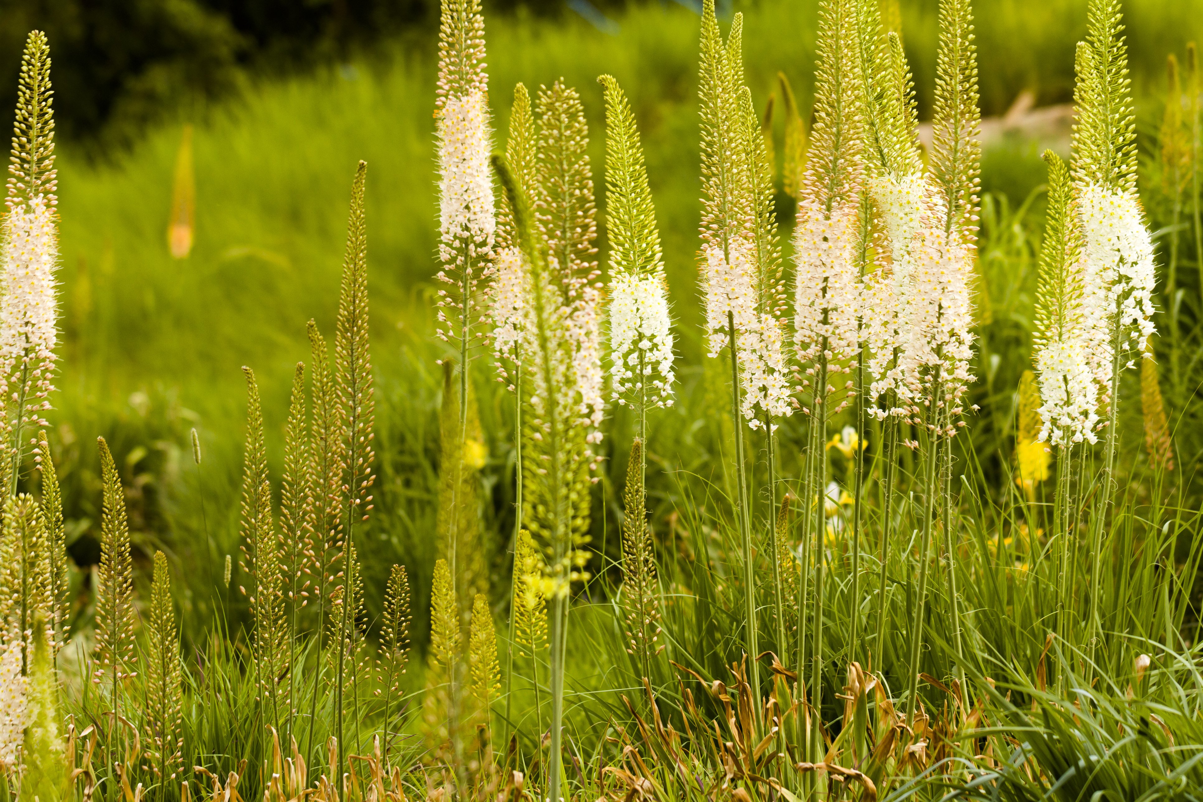 Неймовірні, гігантські, білі пляшкові китиці над купою прикореневого листя. Надзвичайно підкреслюють весняне листя інших трав’янистих багаторічників. Вони трохи непередбачувані, і вам доводиться вдавати, що брудно-білого кінця цвітіння насправді не відбувається.