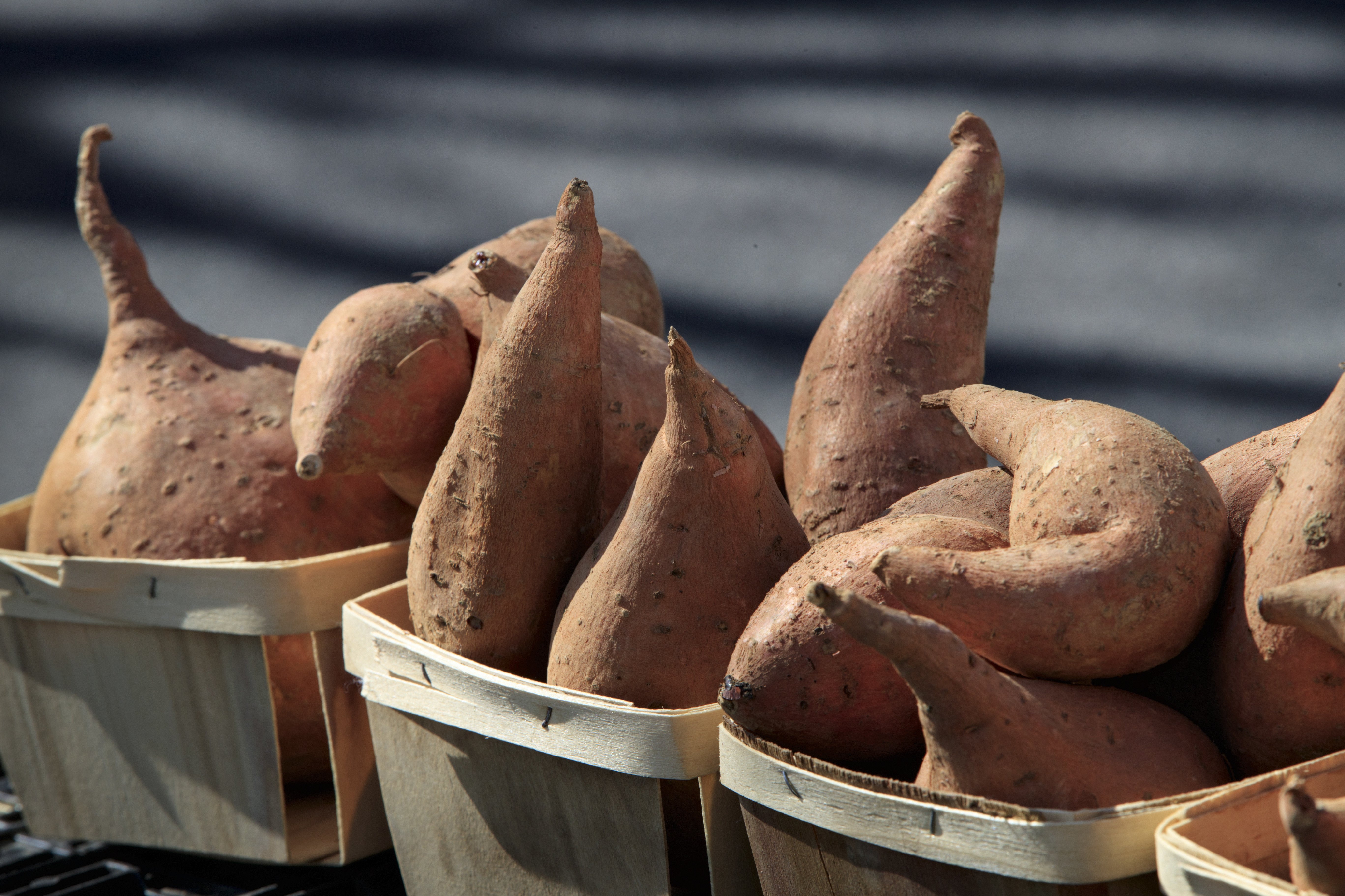 Солодка картопля багата на бета-каротин, який організм перетворює на вітамін А, поживну речовину, що підтримує здоров’я шкіри голови, сприяючи виробленню шкірного сала, натуральної олії, яка зволожила волосся та зменшила його ламкість. Вітамін А також сприяє росту та відновленню клітин волосся, допомагаючи пасмам залишатися міцними та стійкими. Одна середня солодка картопля забезпечує понад чотири рази рекомендовану добову норму вітаміну А, який також відіграє важливу роль у зорі, розвитку кісток та імунній функції.