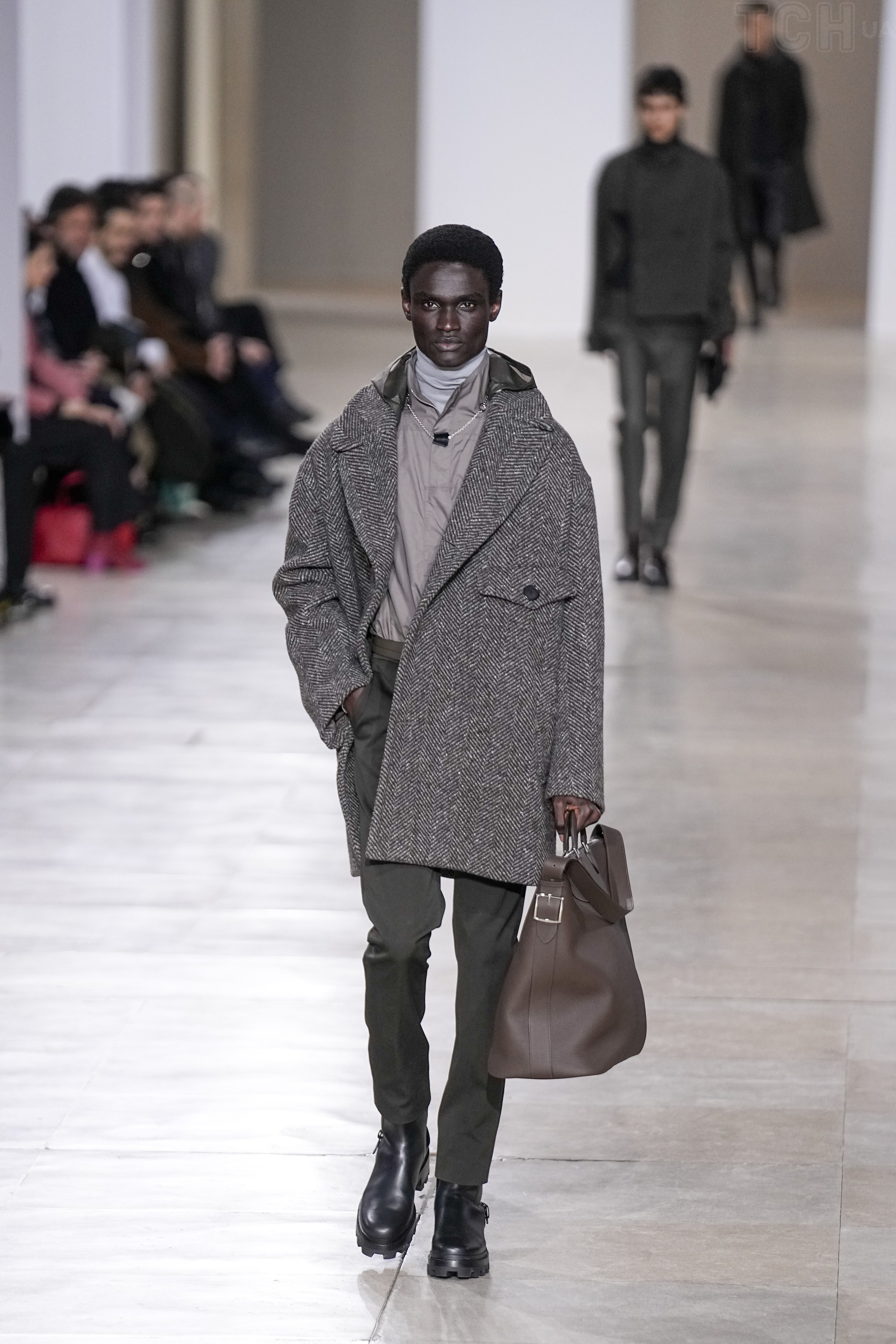 Речі з цієї колекції Hermès мають сучасний, модний вигляд і є практичними. Не минулося й без сумок марки, адже це одна з найпопулярніших у них позицій. Деякі чоловіки несли в руках на подіумі різні моделі у стриманих відтінках.