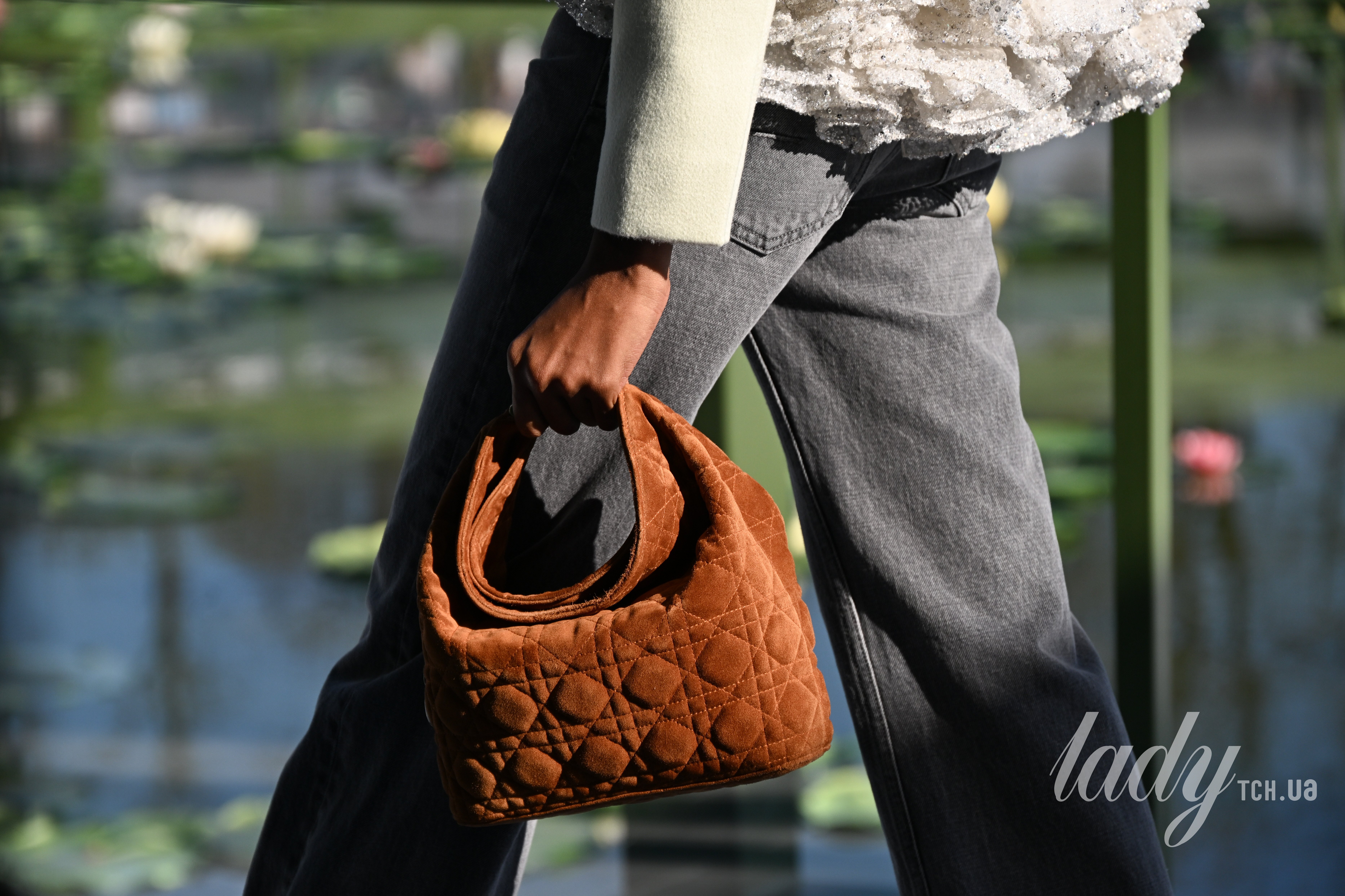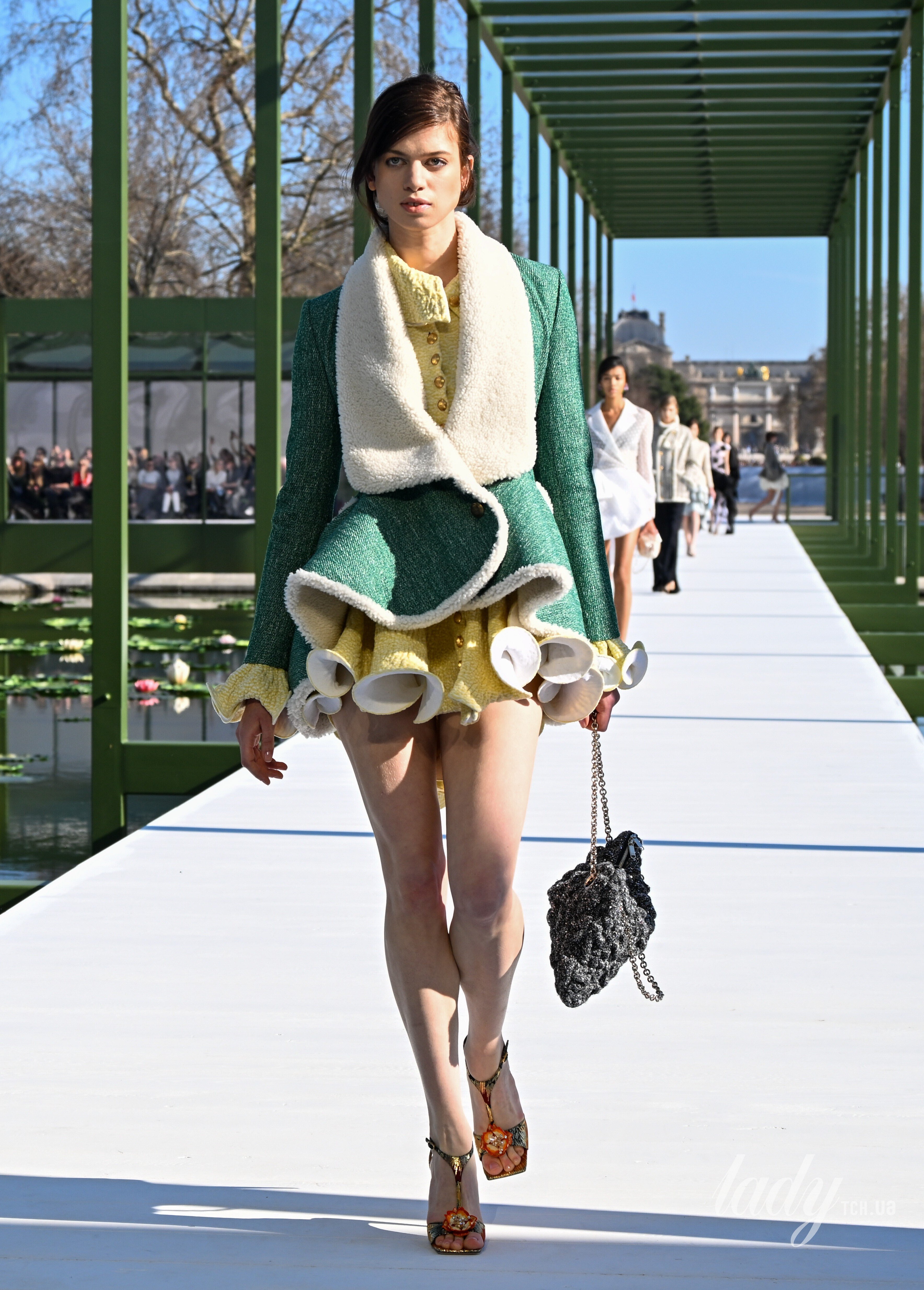 Креативний директор бренду Джонатан Андерсон знову вдалло зробив ставку на емоцію. Його розкішне шоу відбувалося у Саду Тюїльрі, де подіум побудували над ставком з водяними ліліями і пофарбували у той самий відтінок, що й культові крісла Fermob Luxumbourg, які прикрашають паризькі сади по всьому місту.