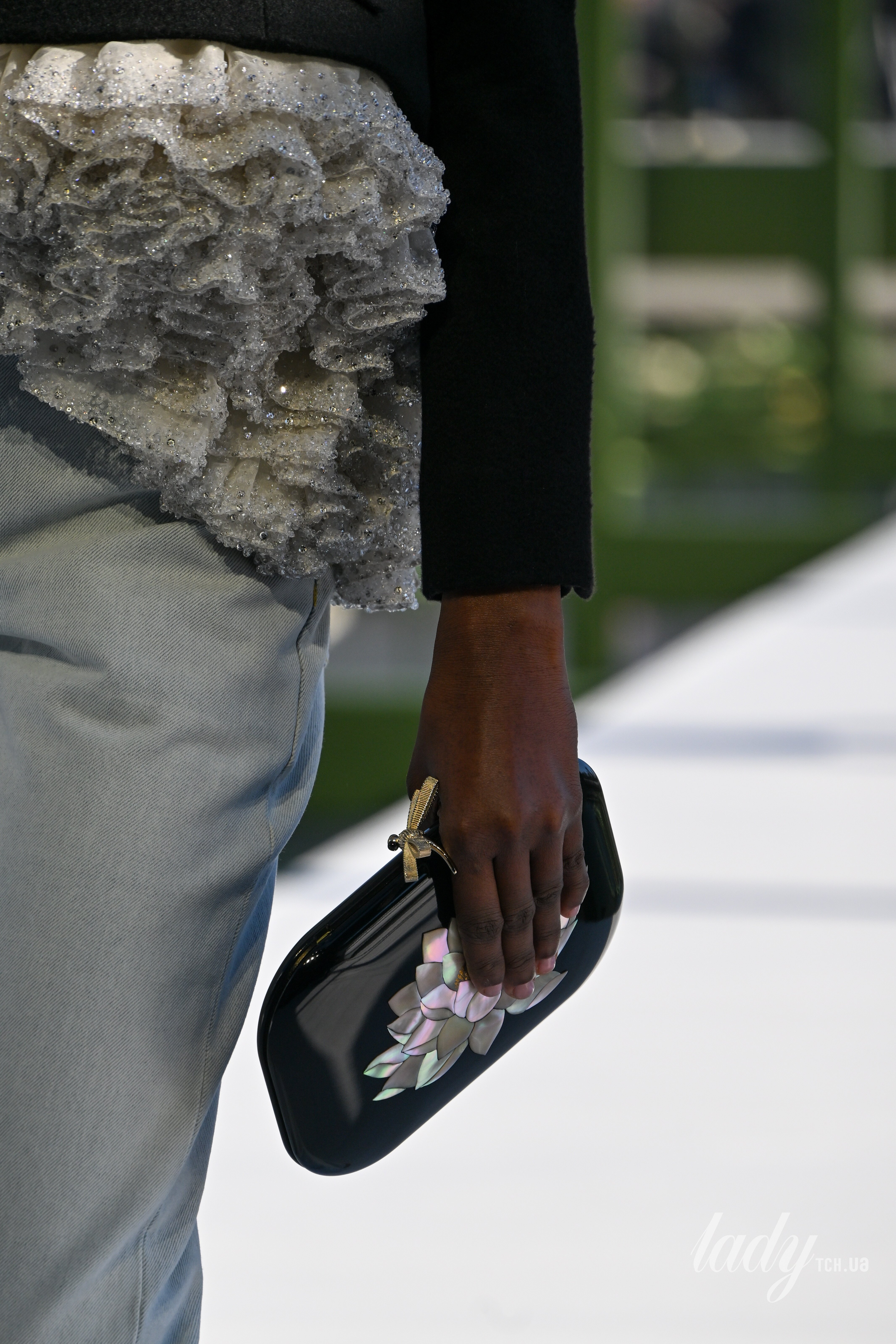 Також основним акцентом колекції стали водяні лілії, адже з’являлися у вигляді брошок, сережок, принтів та прикрашали взуття.
