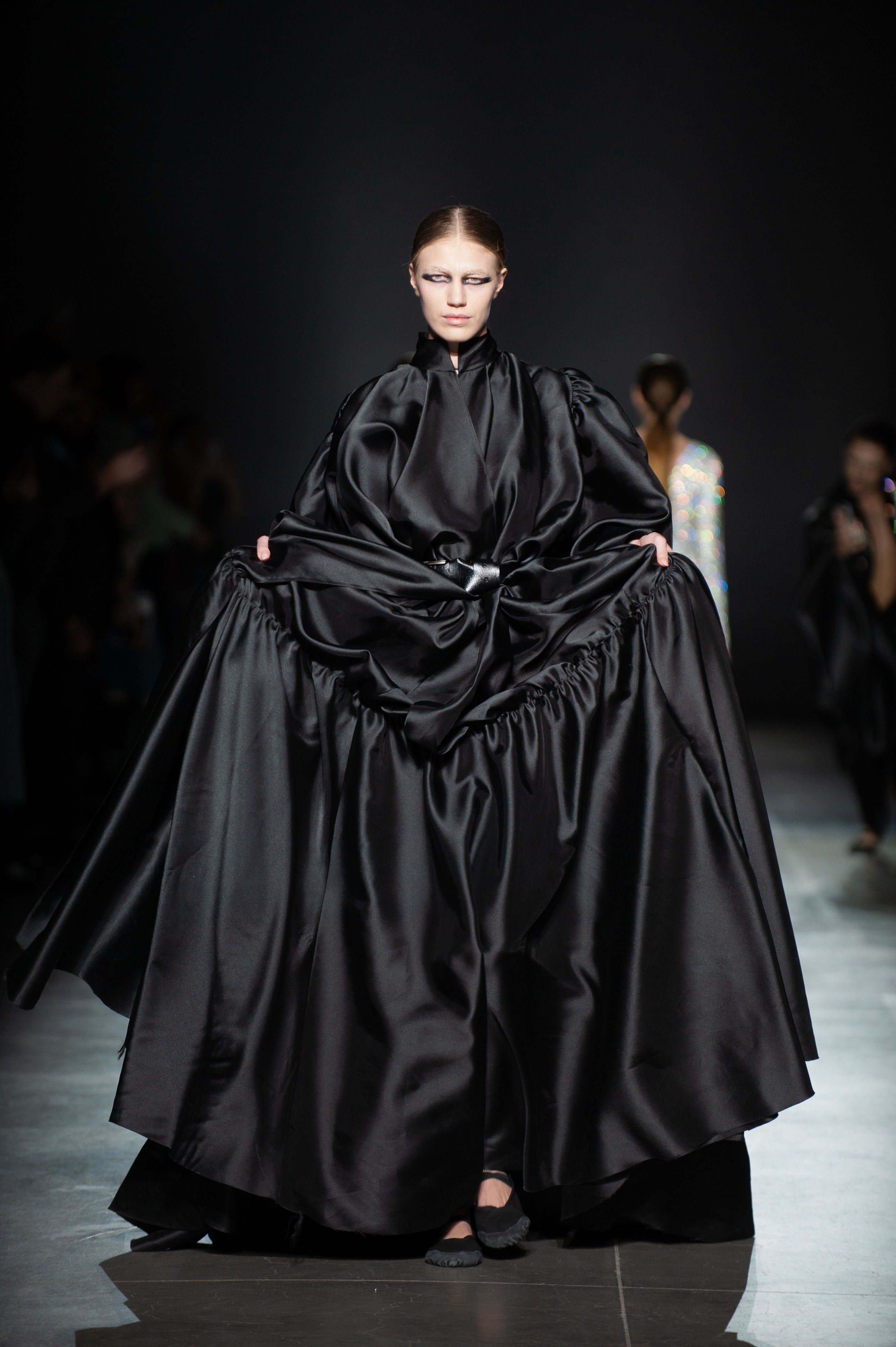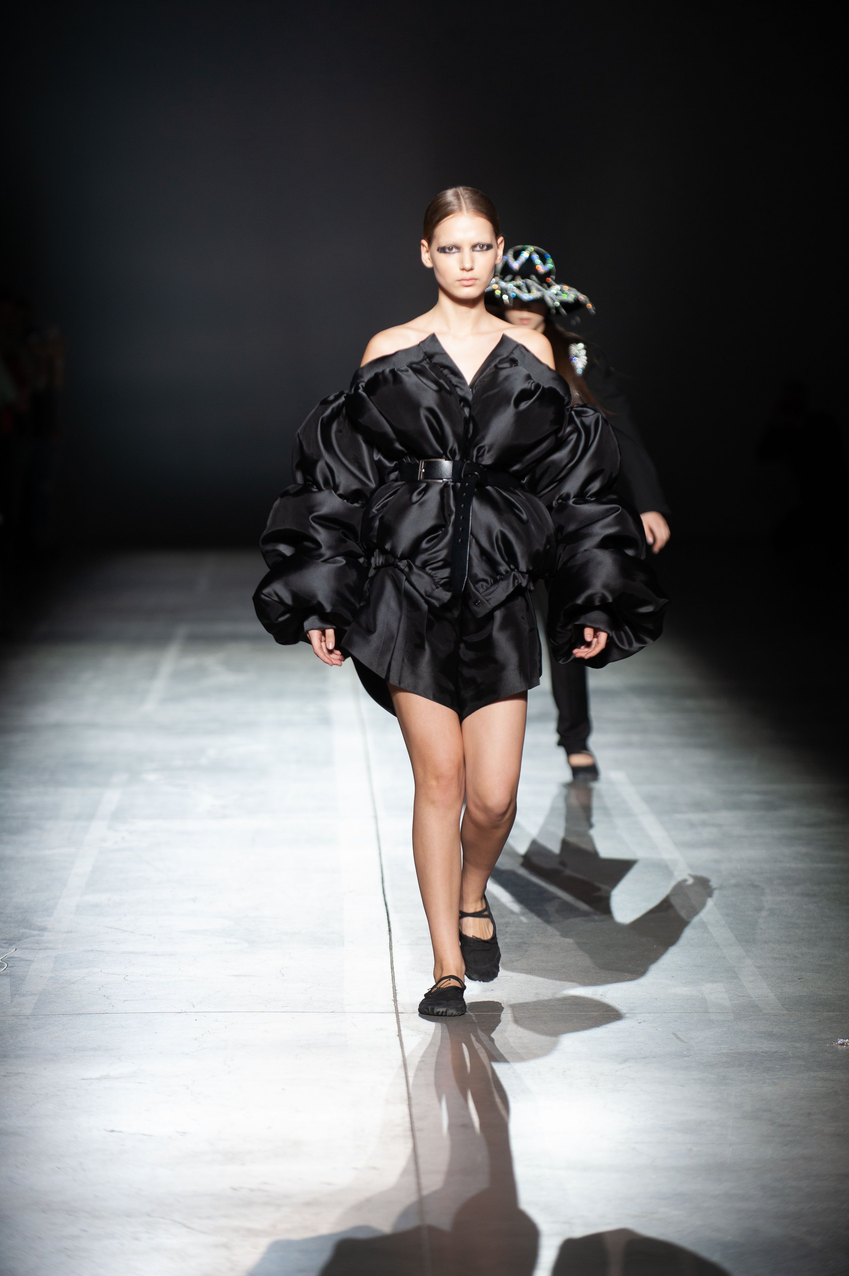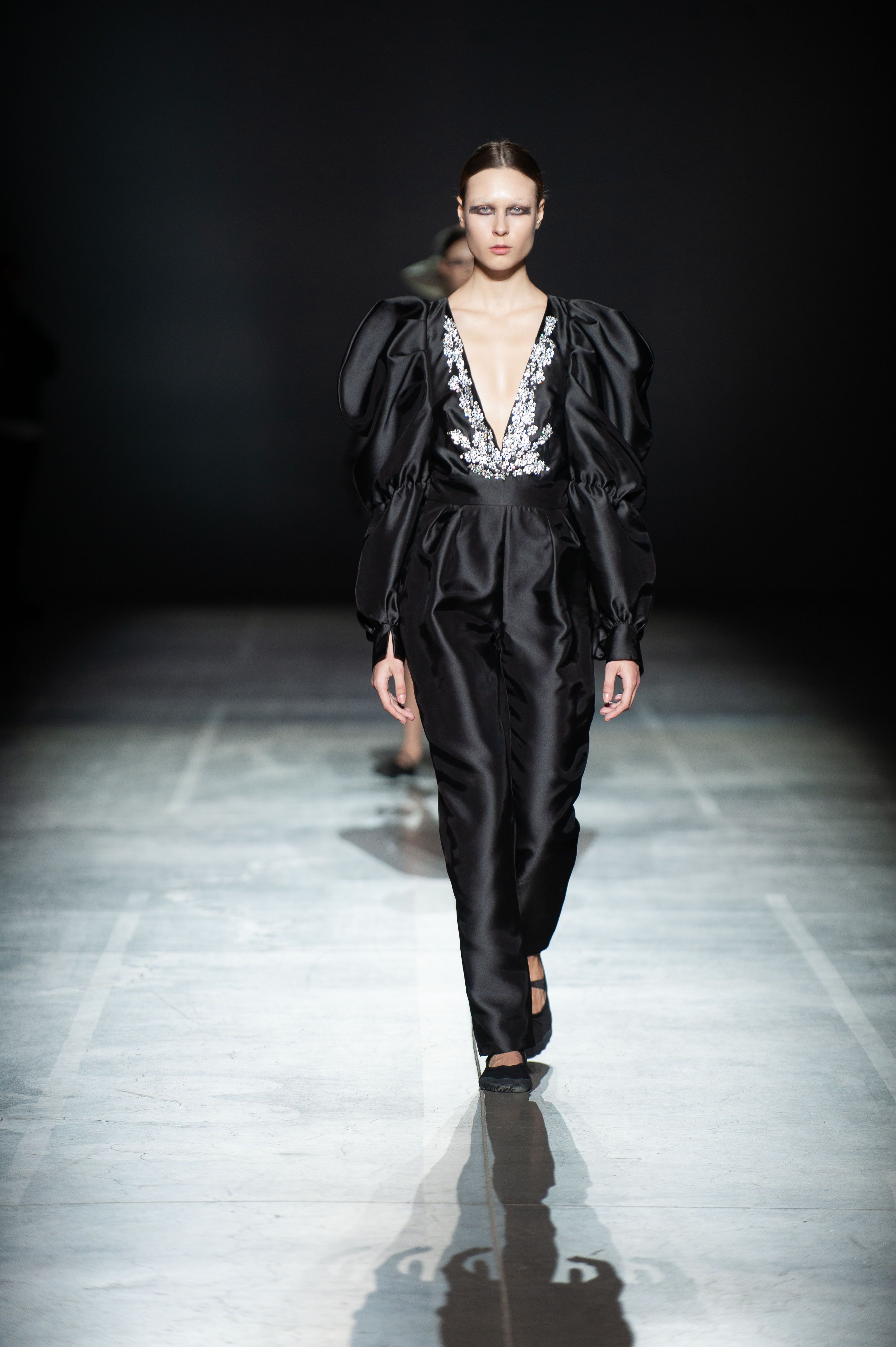 У силуетах моделей з тафти і гіпертрофованих рукавах можна побачити нове прочитання романтичної готики.