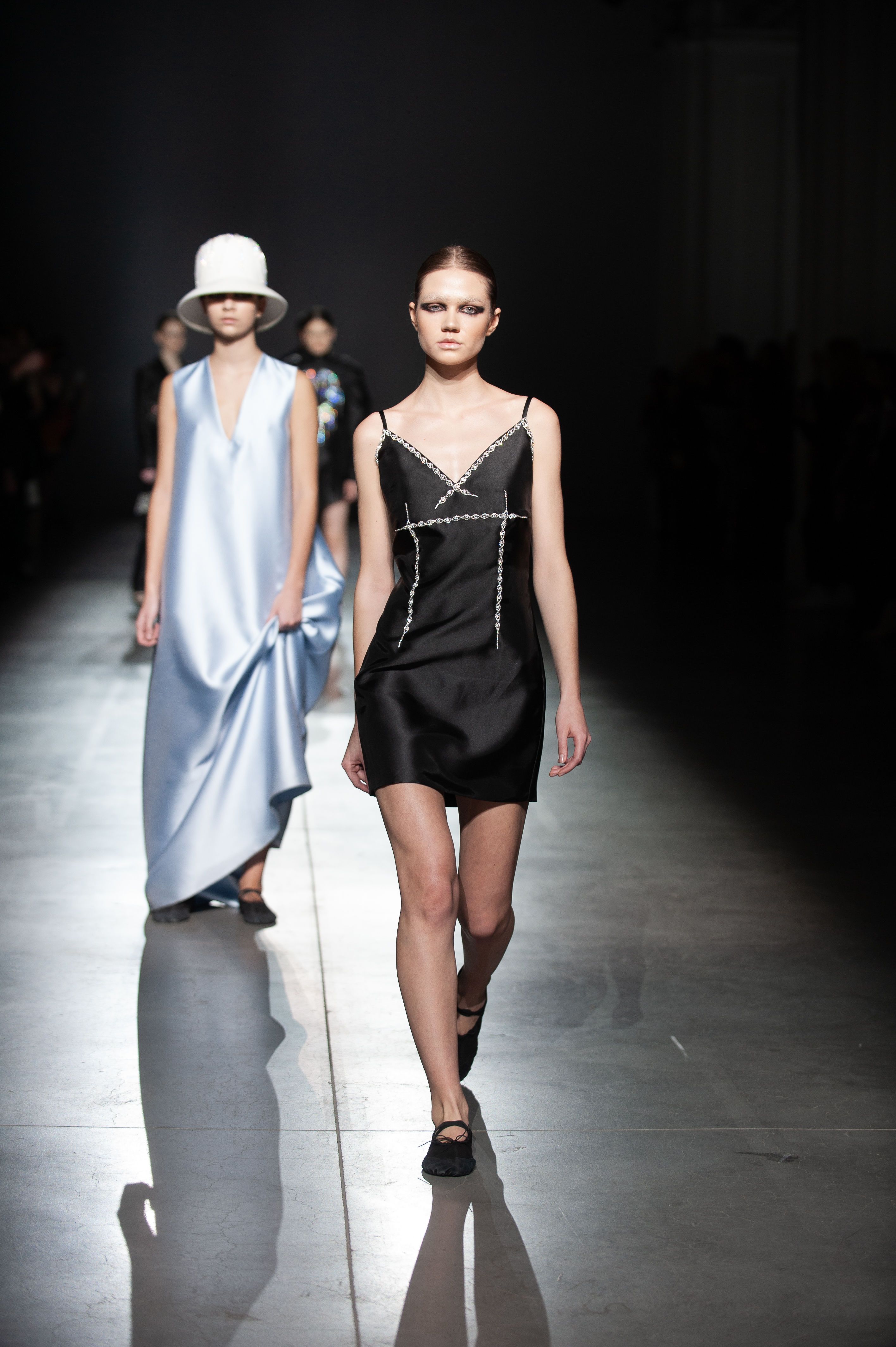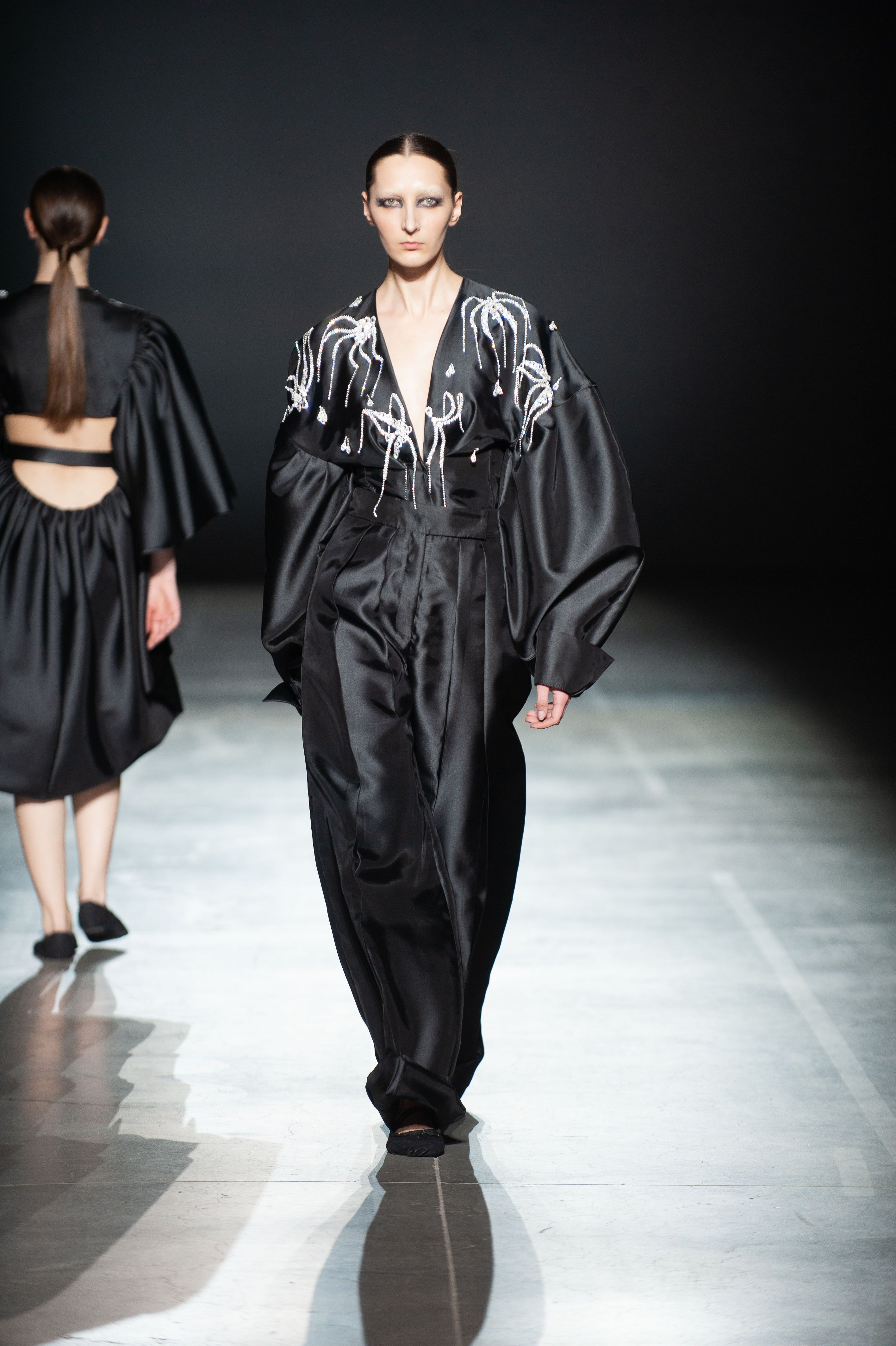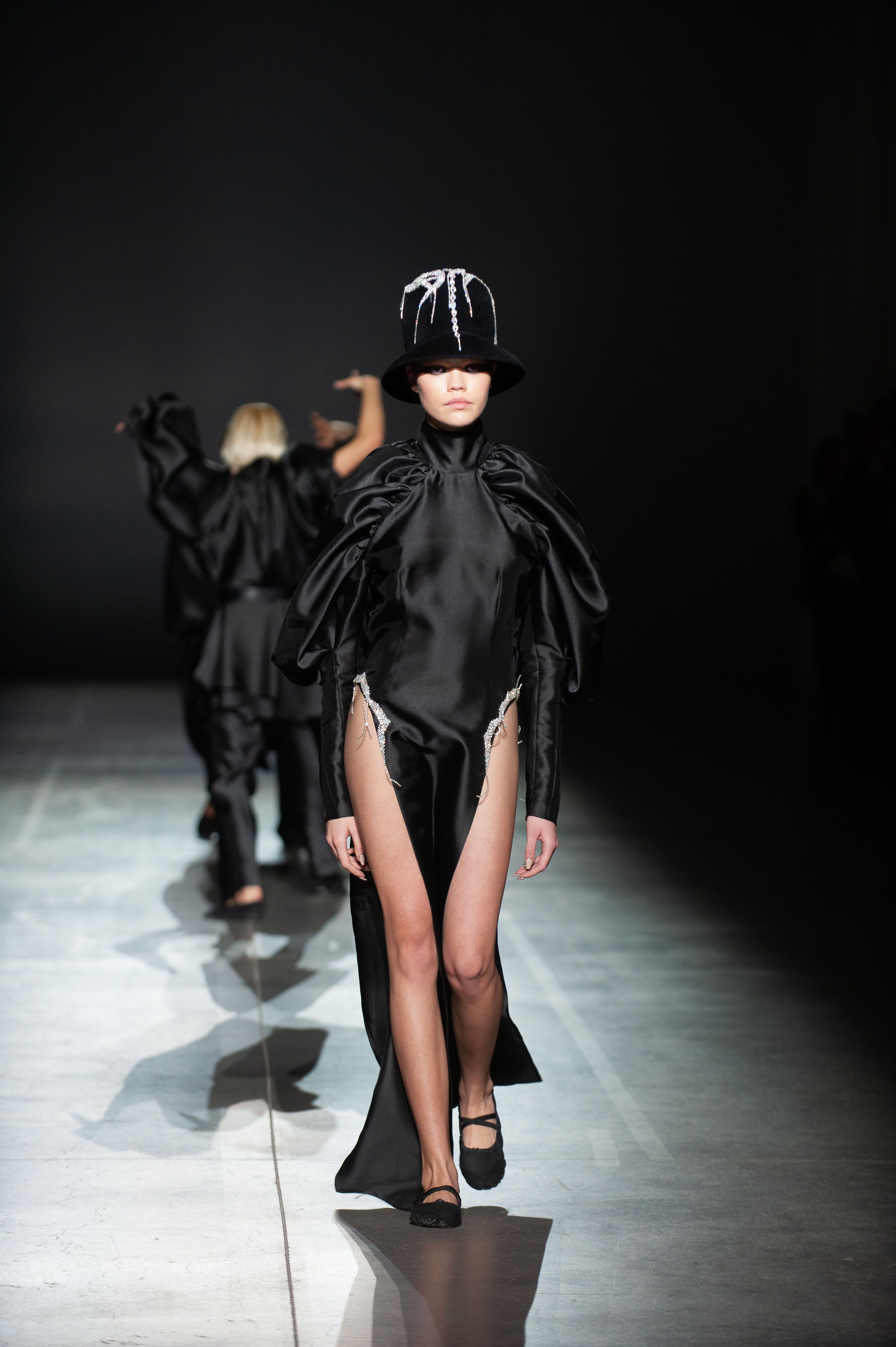 У силуетах моделей з тафти і гіпертрофованих рукавах можна побачити нове прочитання романтичної готики.