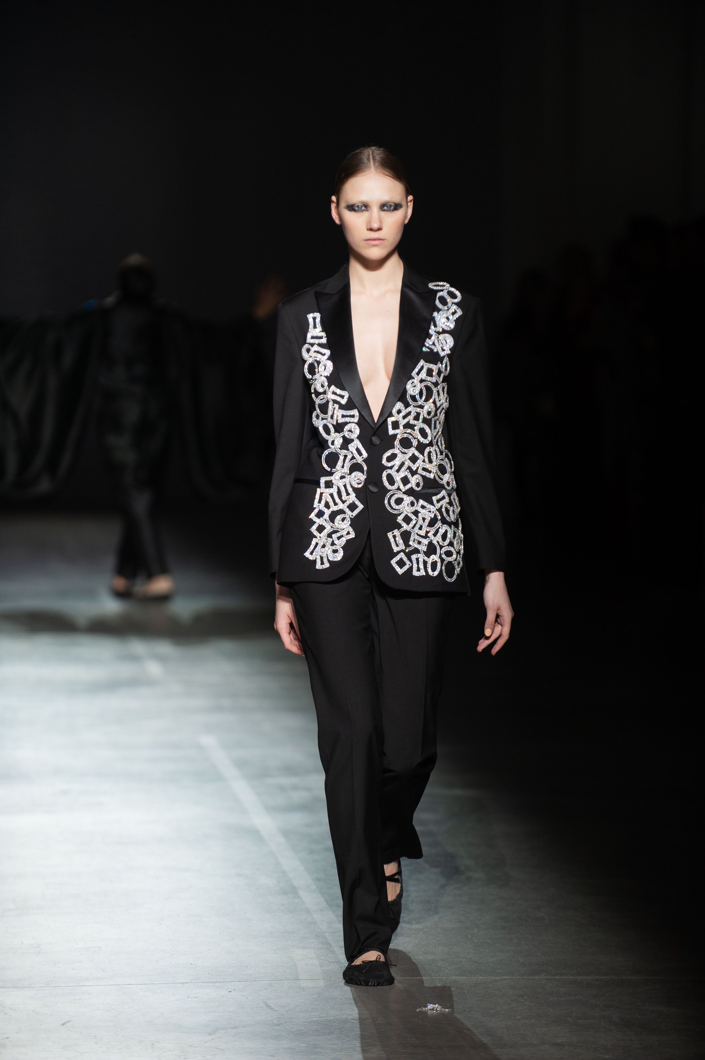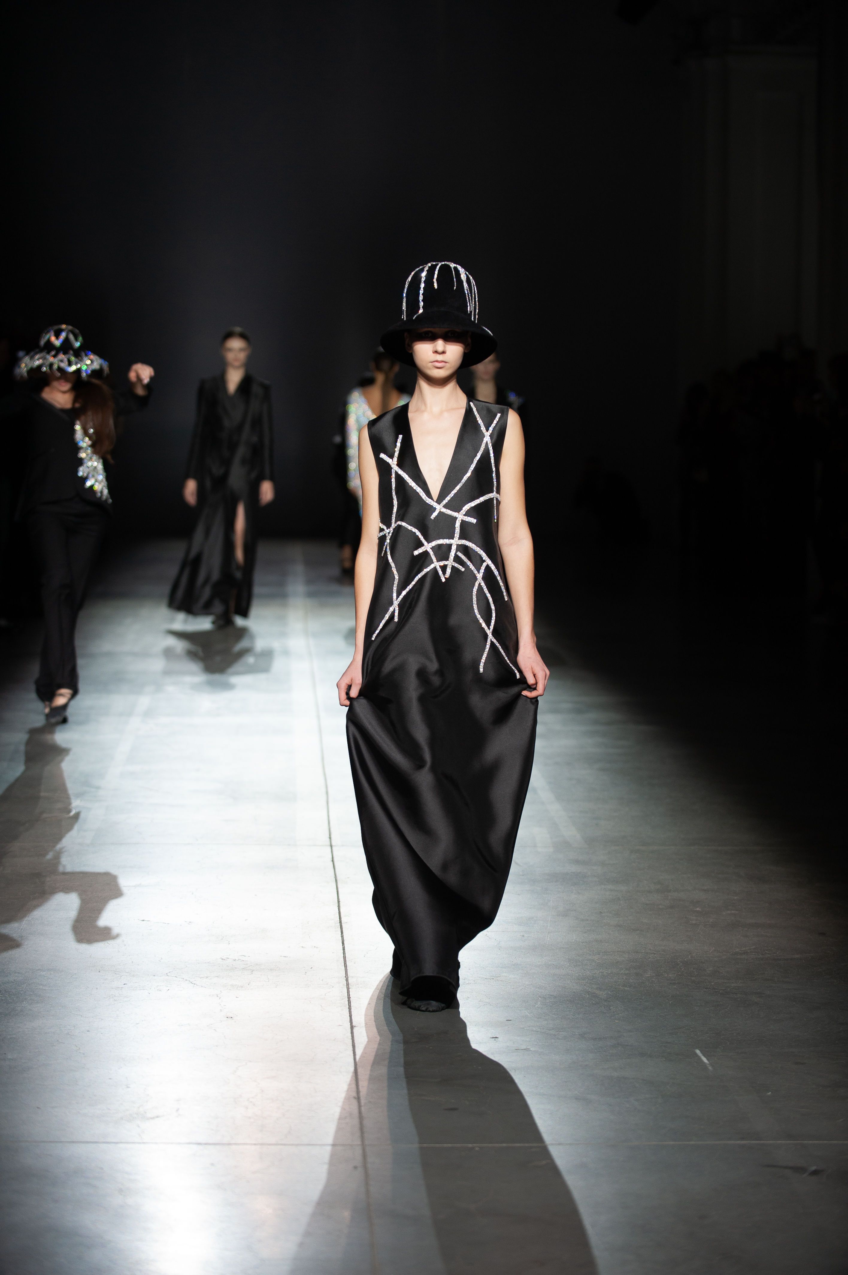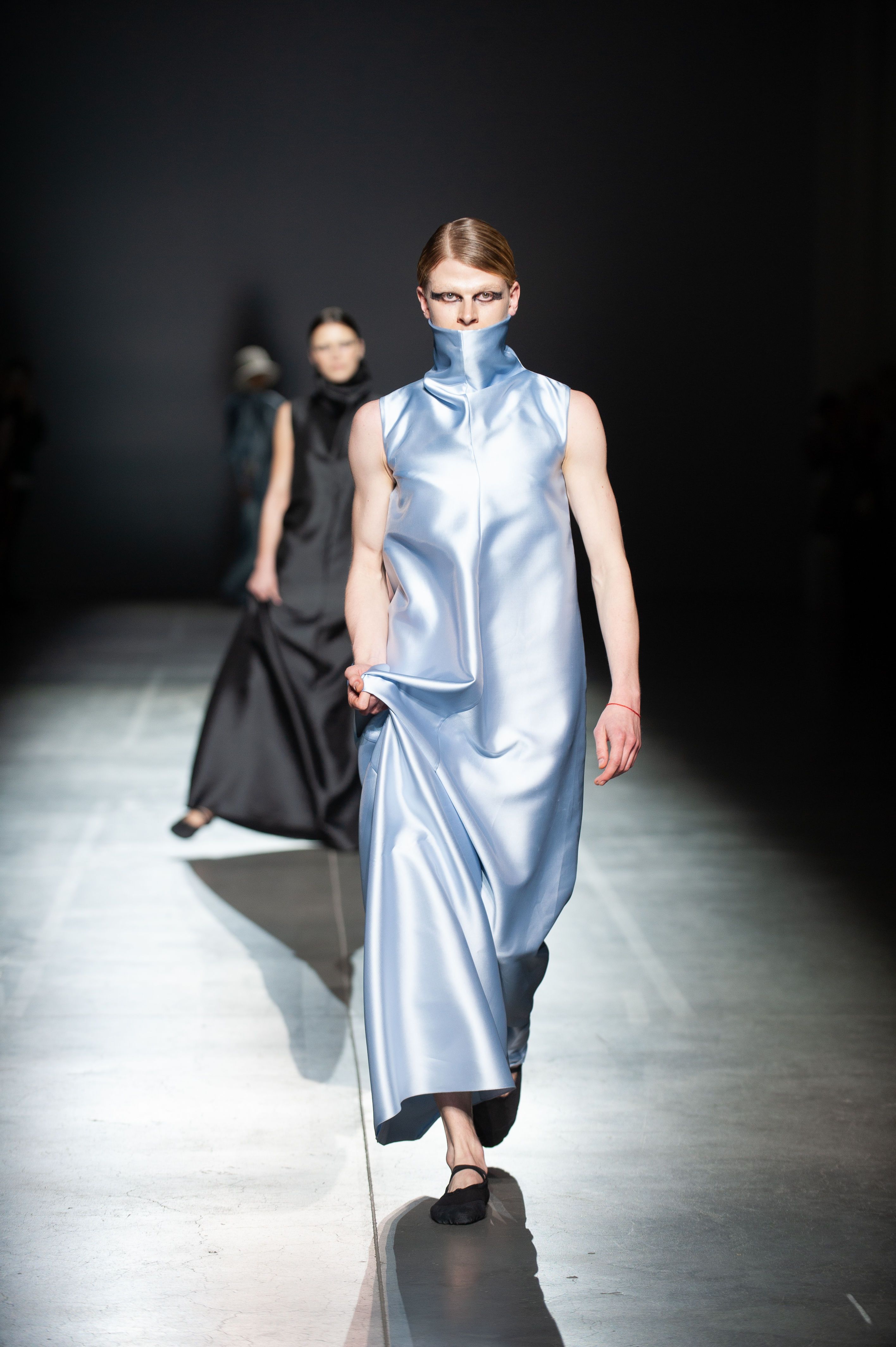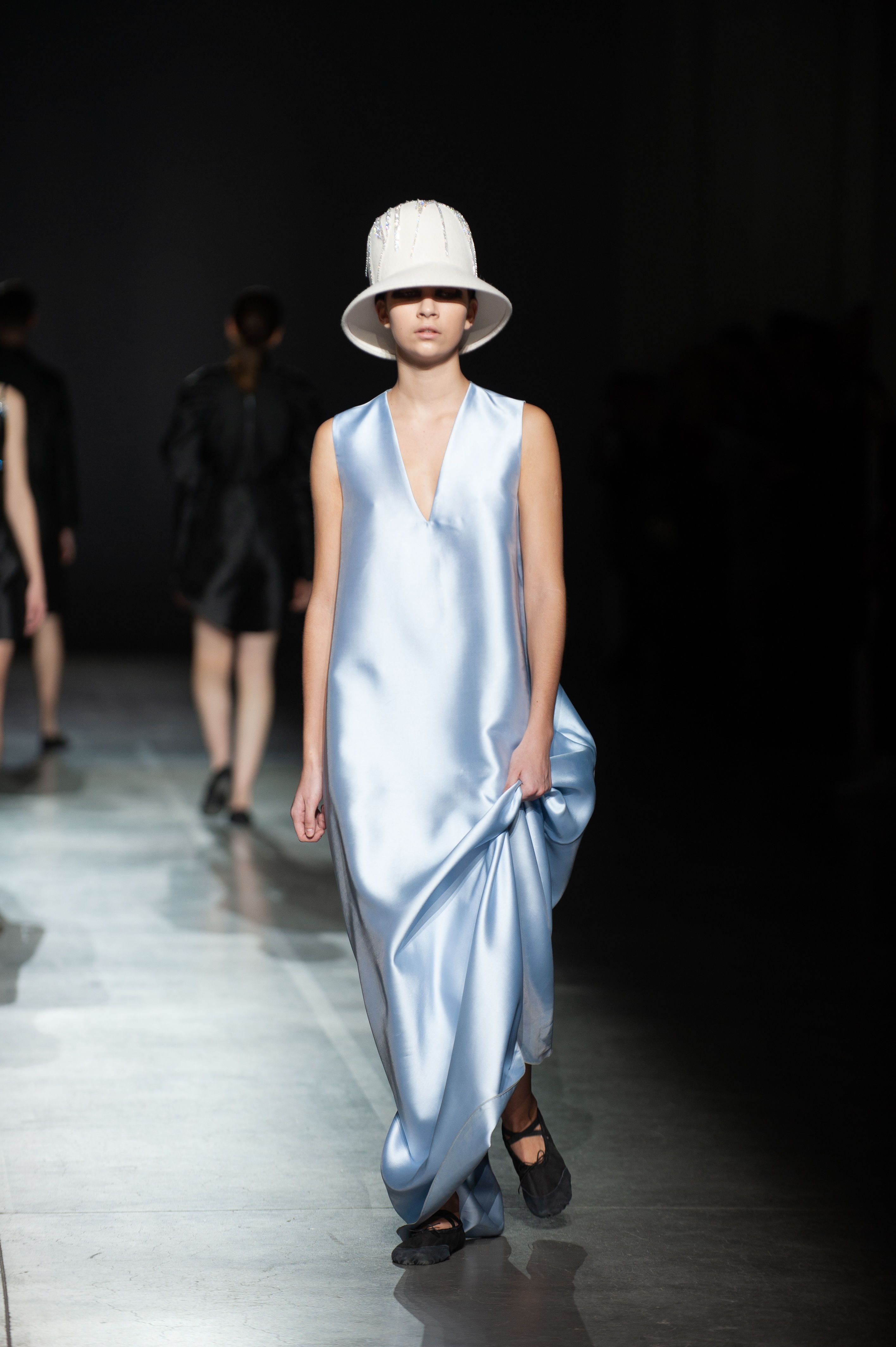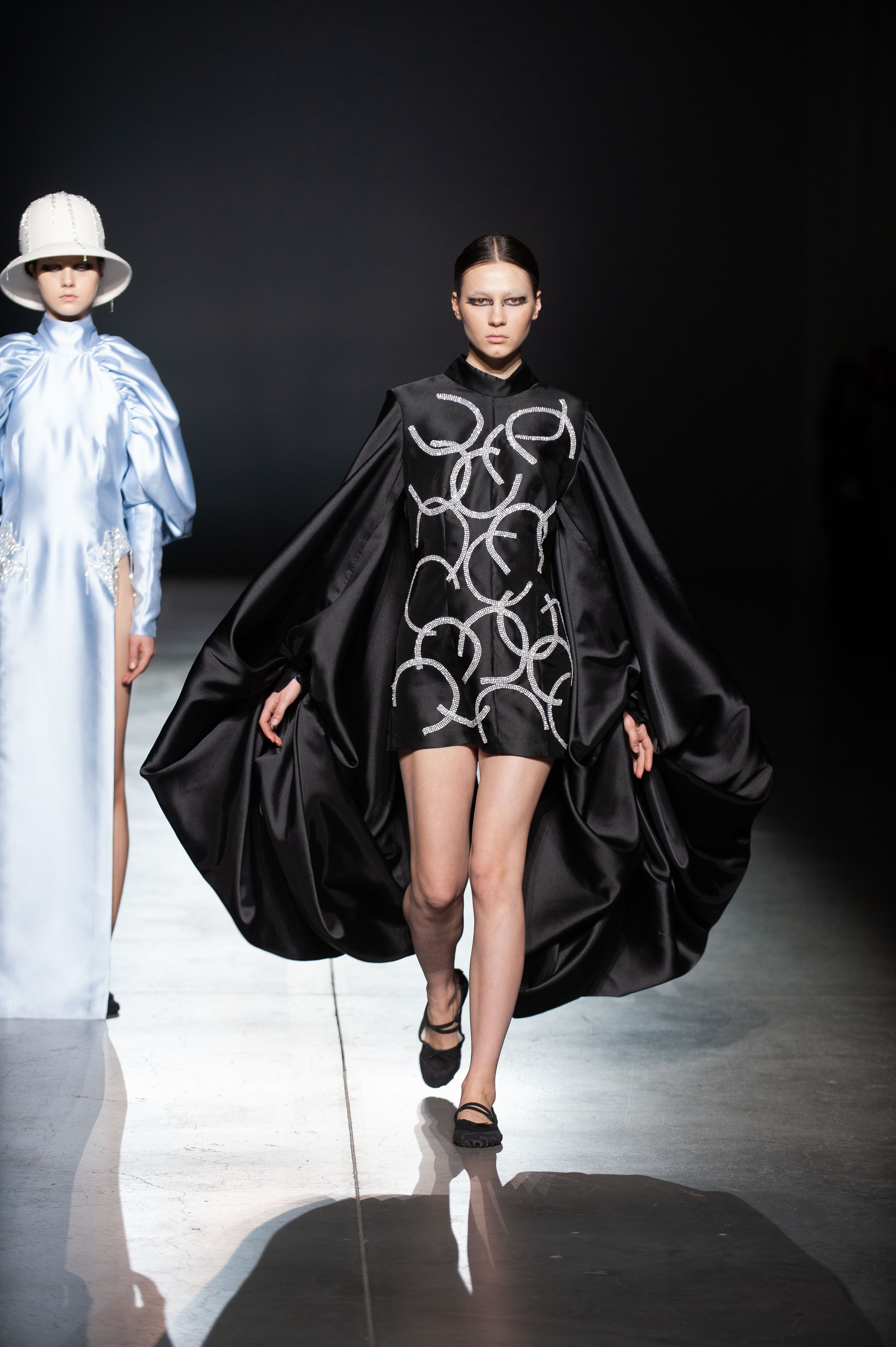 Колекція складається з об'ємних герметичних суконь, боді, костюмів з шовкової тафти і жакетів, виконані в технології bespoke.