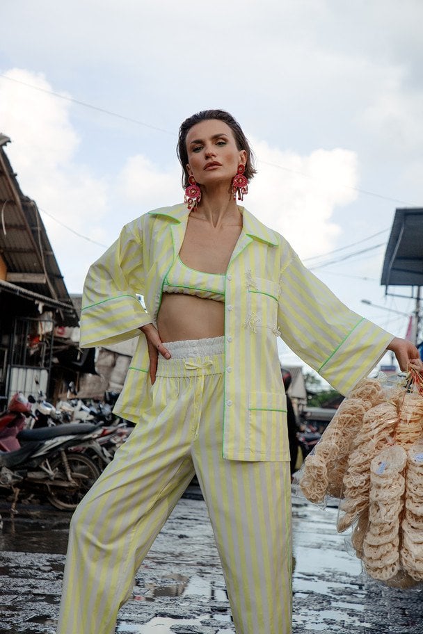 Біла сукня і яскраві піжами в смужку: весняна колекція від українського бренду