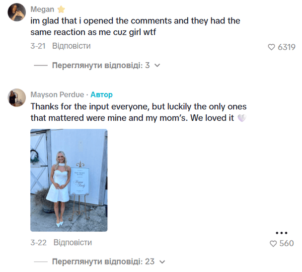 «Я рада, що відкрила коментарі й побачила, що в інших була така ж реакція, як у мене, бо, дівчино, що це взагалі було?»