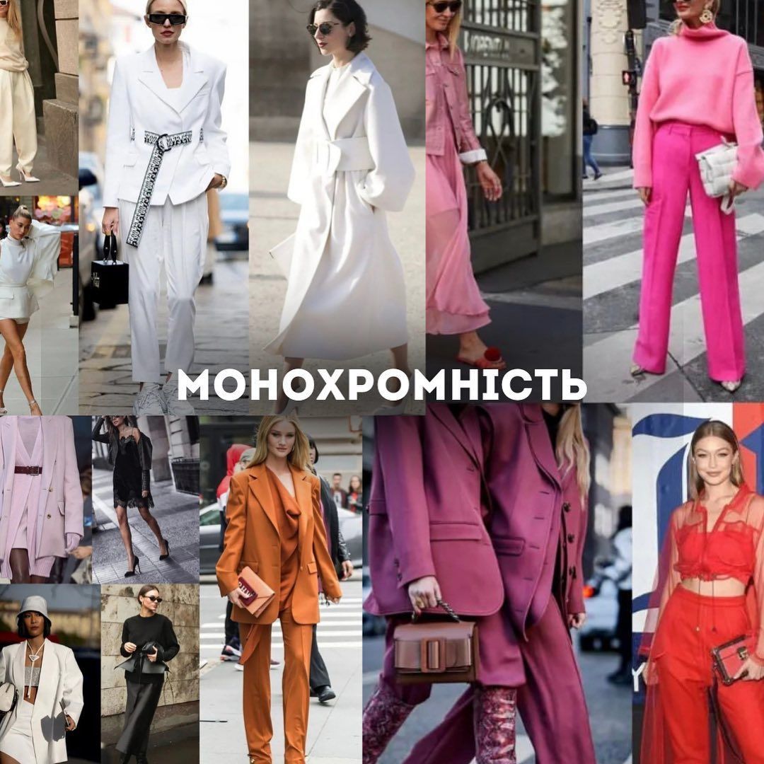 Монохром став наймоднішим поєднанням цього сезону! Не бійтеся експериментувати з образами у кольорі — фуксія, глибокий темно-синій та зелений, і навіть образи в монохромних принтах — сміливо додавайте до свого гардеробу!
