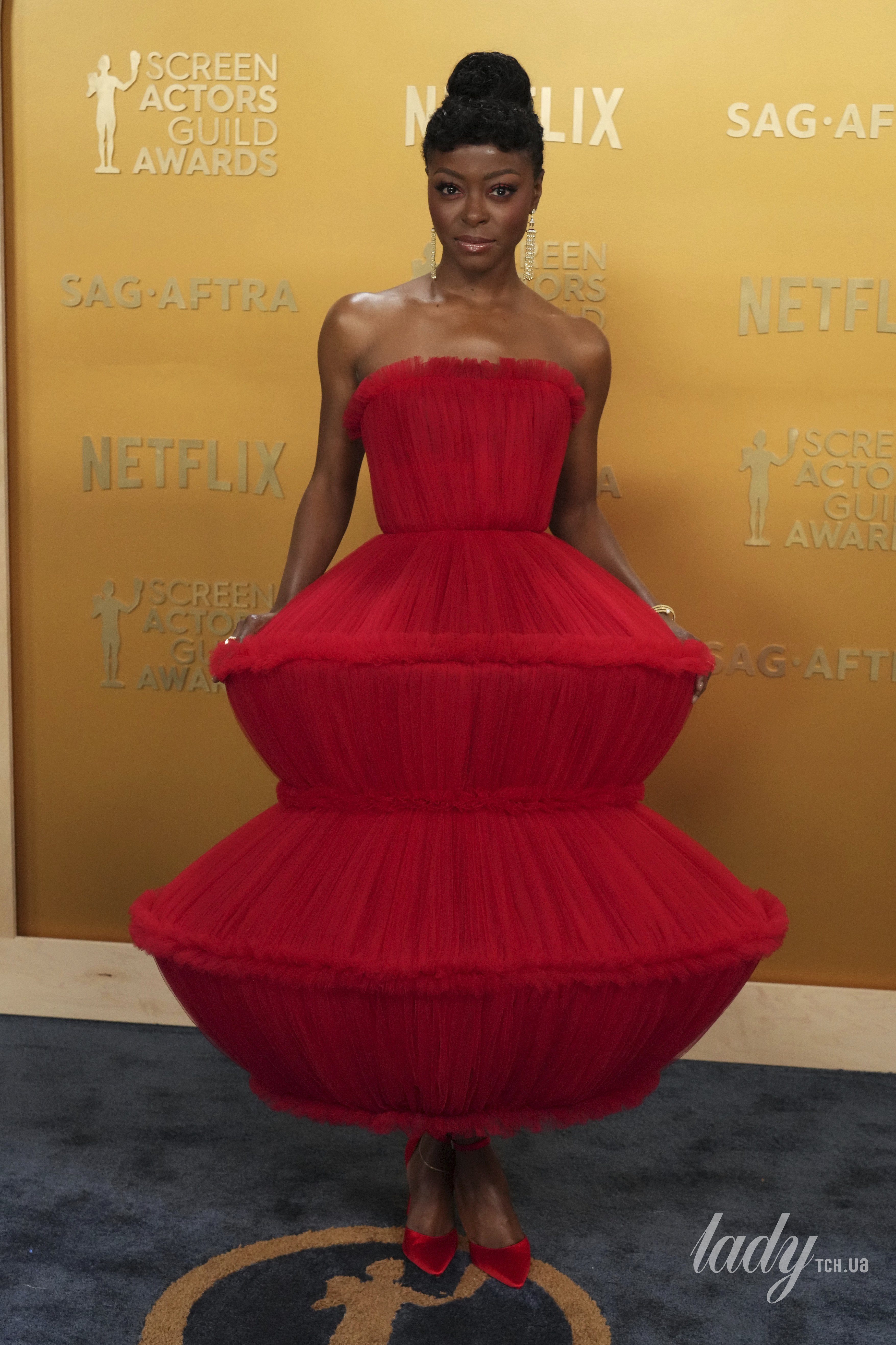 Червона оксамитова сукня Полсон він Marc Jacobs була надзвичайною, адже дивувала своїм креативом. Однак це вбрання дійсно привернуло увагу до акторки і виділило її на фоні колег.