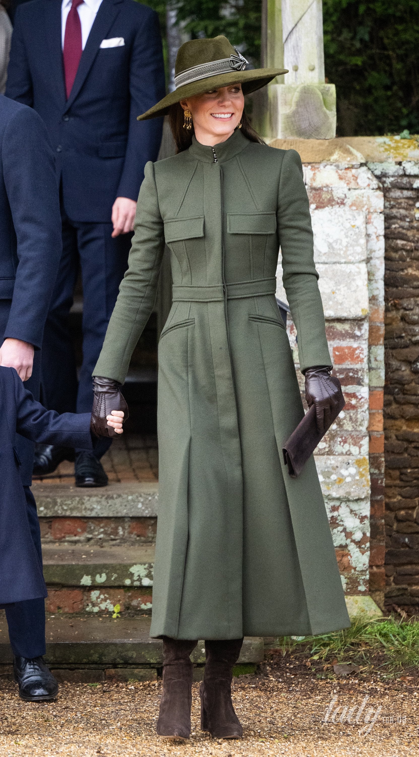 Зазвичай на різдвяній службі Кетрін з’являється у пальті. Цього року принцеса продемонструвала вишуканий сільський шик, одягнувши одне з найулюбленіших коричневих пальт від Blazé Milano, яке вже неодноразово одягала раніше. Такий вибір Кейт підкреслює її давню відданість повторному використанню ключових речей, а не гонитву за новинками.