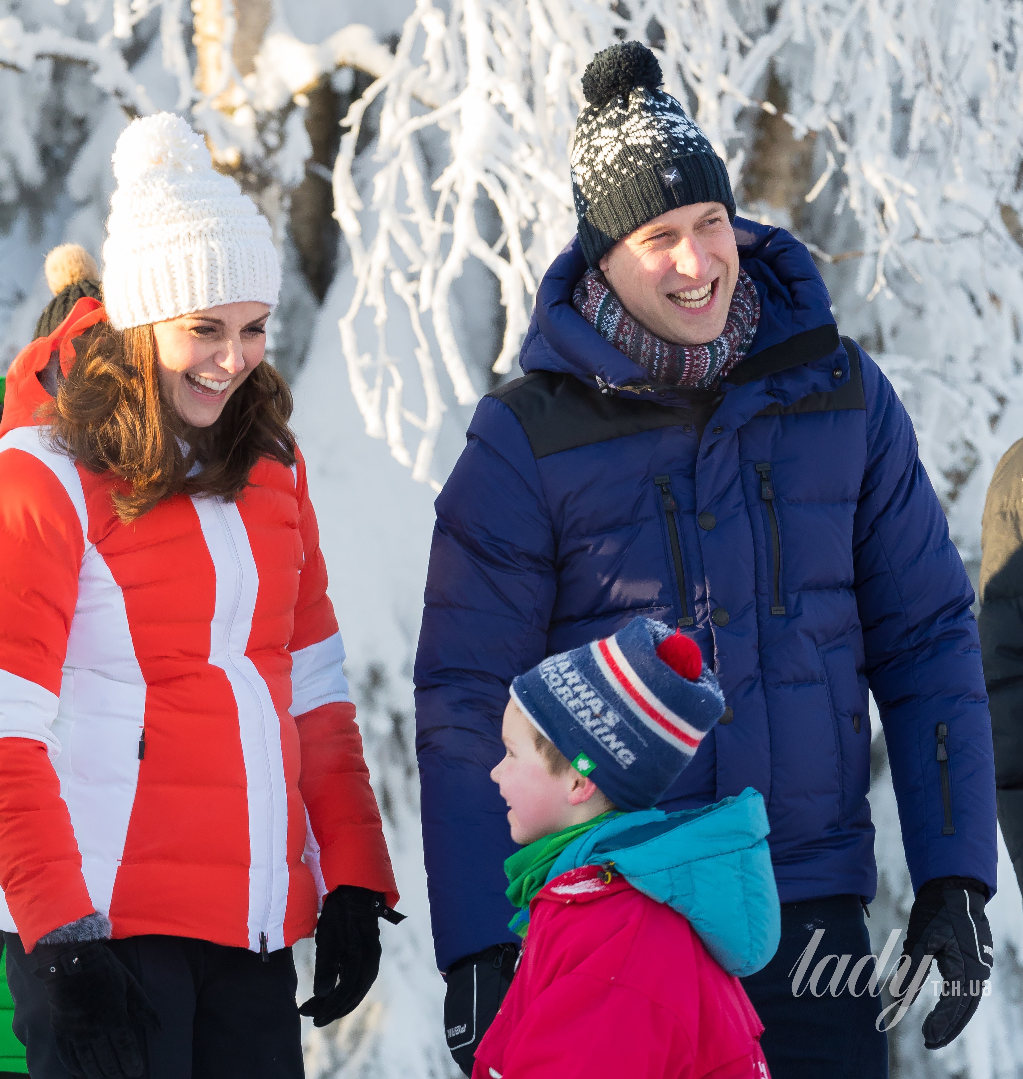 Справжній зимовий образ Кейт продемонструвала під час їхньої з Вільямом поїздки до Осло 2018 року. Тоді подружжя побувало на лижній арені Гольменколлен. Кетрін була у лижному костюмі — яскравій куртці від відомої фірми Kjus, яка займається створенням костюмів для любителів лижного спорту. Ціна такої куртки — близько 900 доларів. Також вона одягла теплі рукавички та білу шапку з помпоном. У той період Кетрін була вагітна своєю третьою дитиною — принцом Луї, тому стежила за тим, щоб не замерзнути під час поїздки Скандинавією.